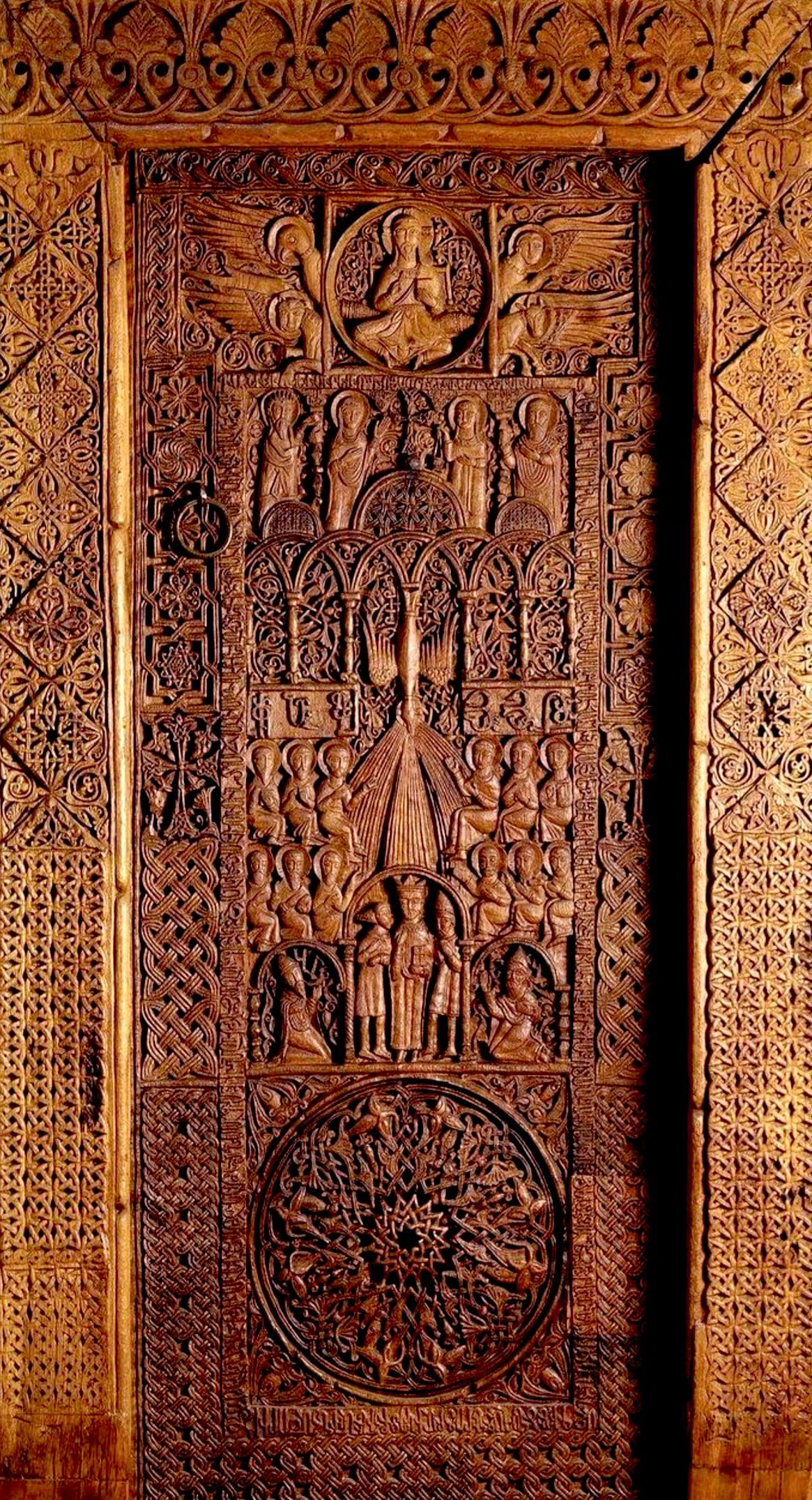 Eine geschnitzte Walnusstür aus dem Jahr 1486