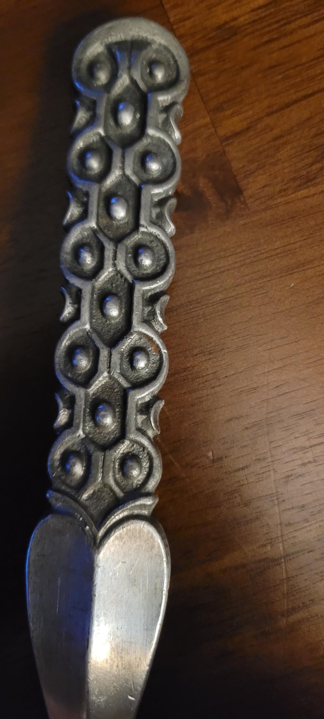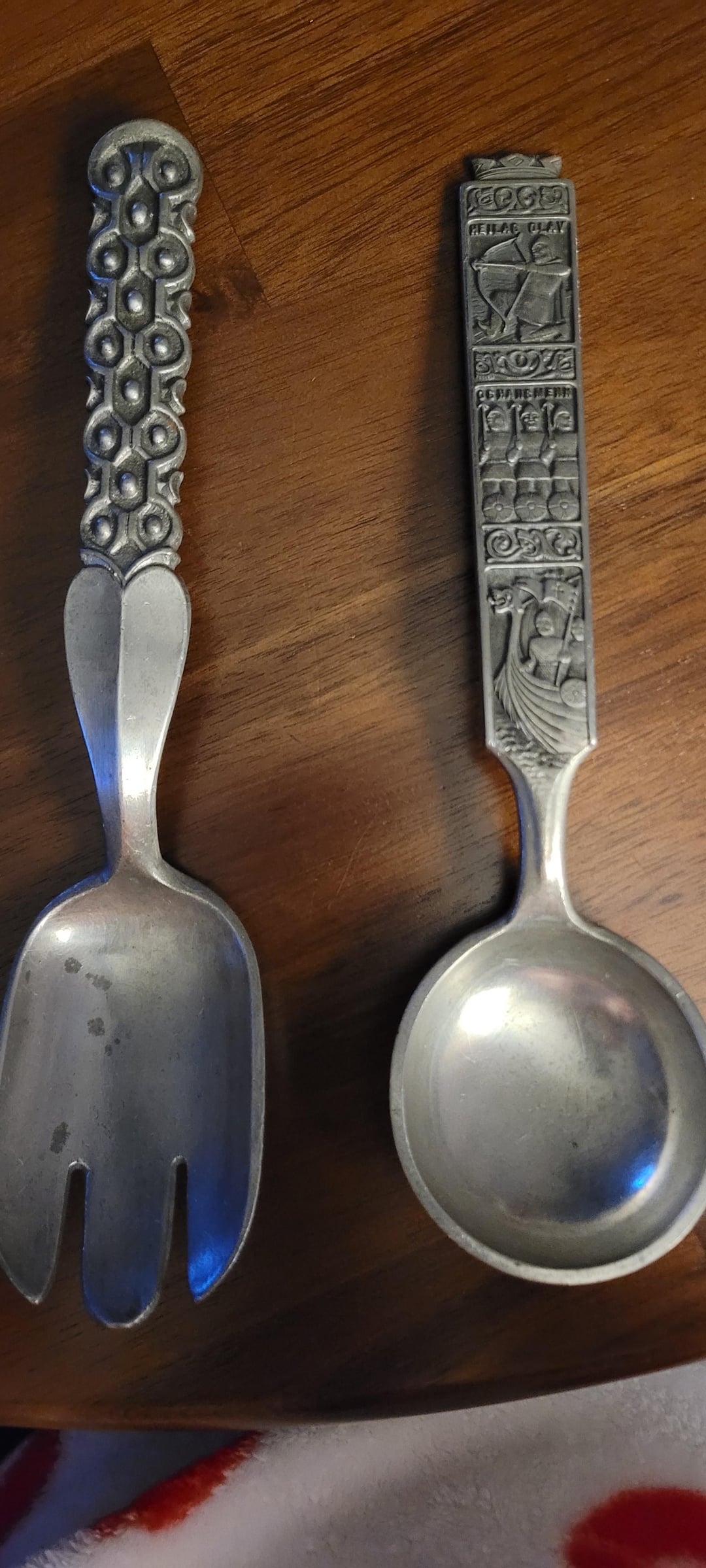 That is not silverware. It doesn’t look like silver, and it even says tinn (tin) pewter on the back.