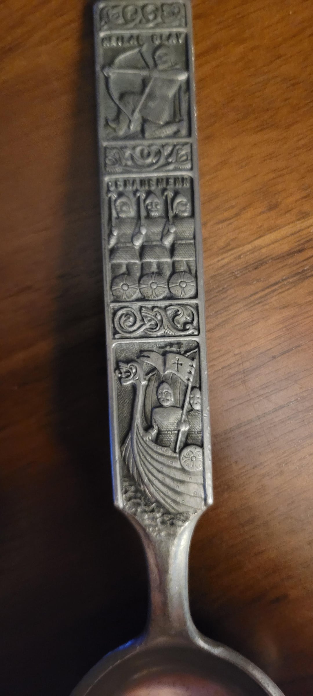 Looks like typical souvenir shop stuff from before the era of cable TV. Not sure when pewter went out of style/lost popularity but it was still a thing in the 70s, back when souvenirs from Norway were also made here. I try to find stuff like this now and it seems to only be online/second hand.