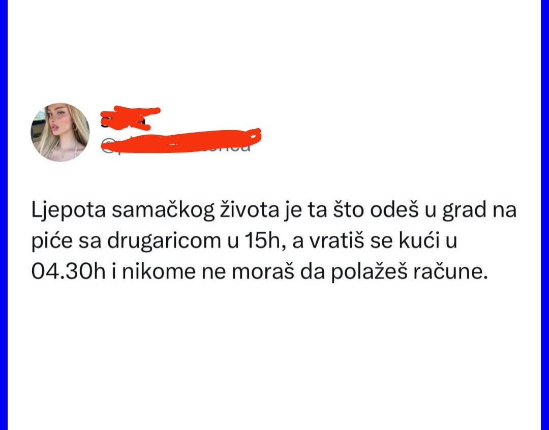 Meni su komentari prejaki. Pa naravno da je prednost samackog zivota sto nikome ne polazes racune. U nekom trenutku zivota je to imperativ da se osoba razvije, da okusi slobodu, da ima „prirodne posljedice svojih djela“ a ne zabrane roditelja i ogranicenja. I onda kad to isfuras, onda krece sljedeća faza gdje ipak zelis zivot dijeliti s nekim. Neki ostanu u toj prvoj fazi godinama i njih zovemo “ emocionalno nezrelima“. Ali i dalje je to njihov izbor.
