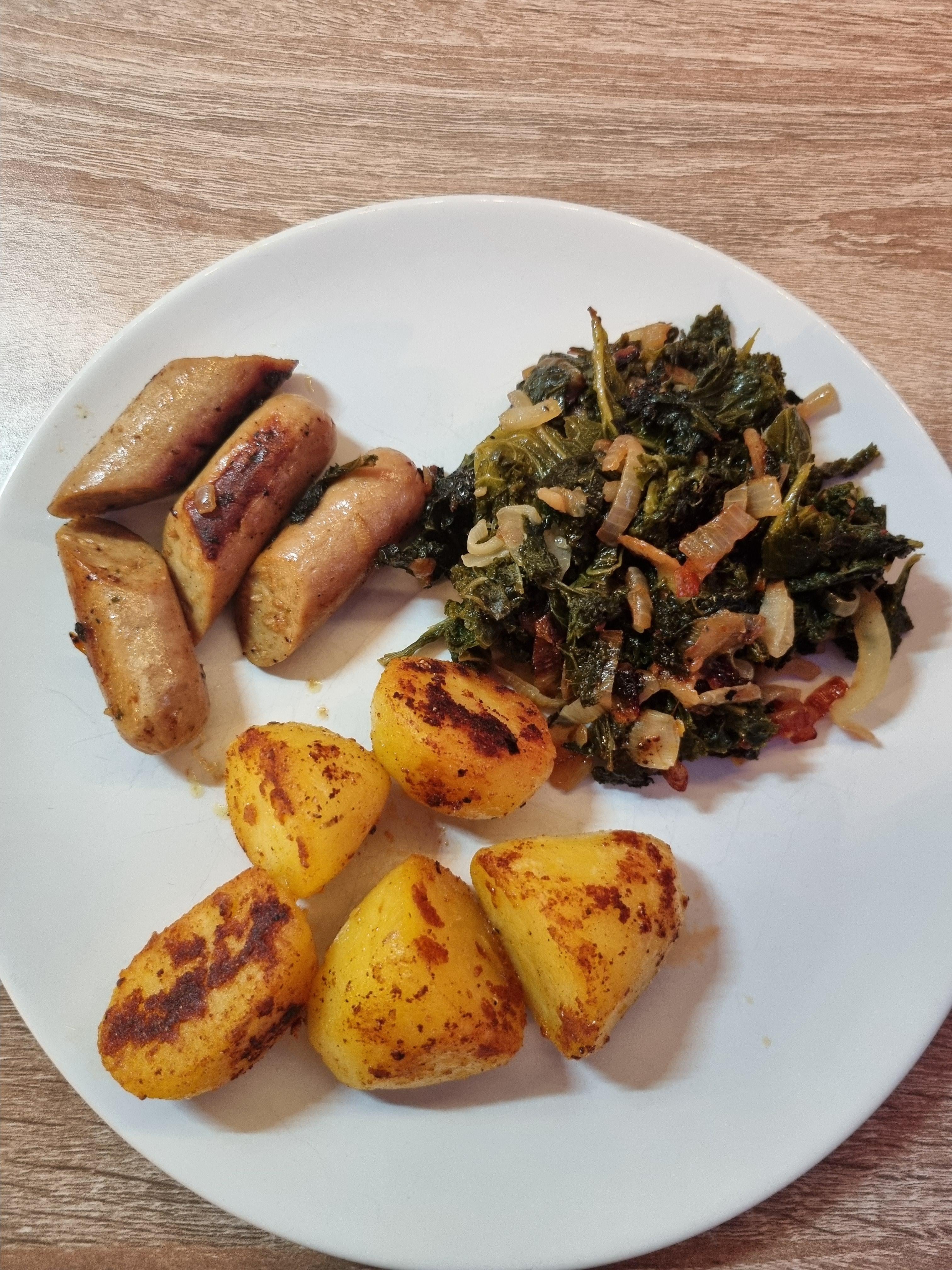 Boah die Kartoffeln sehen richtig geil aus, genau so muss man die machen, selber kein Grünkohl fan, in dem Fall würde ich grob gehackten Spinat nehmen,
