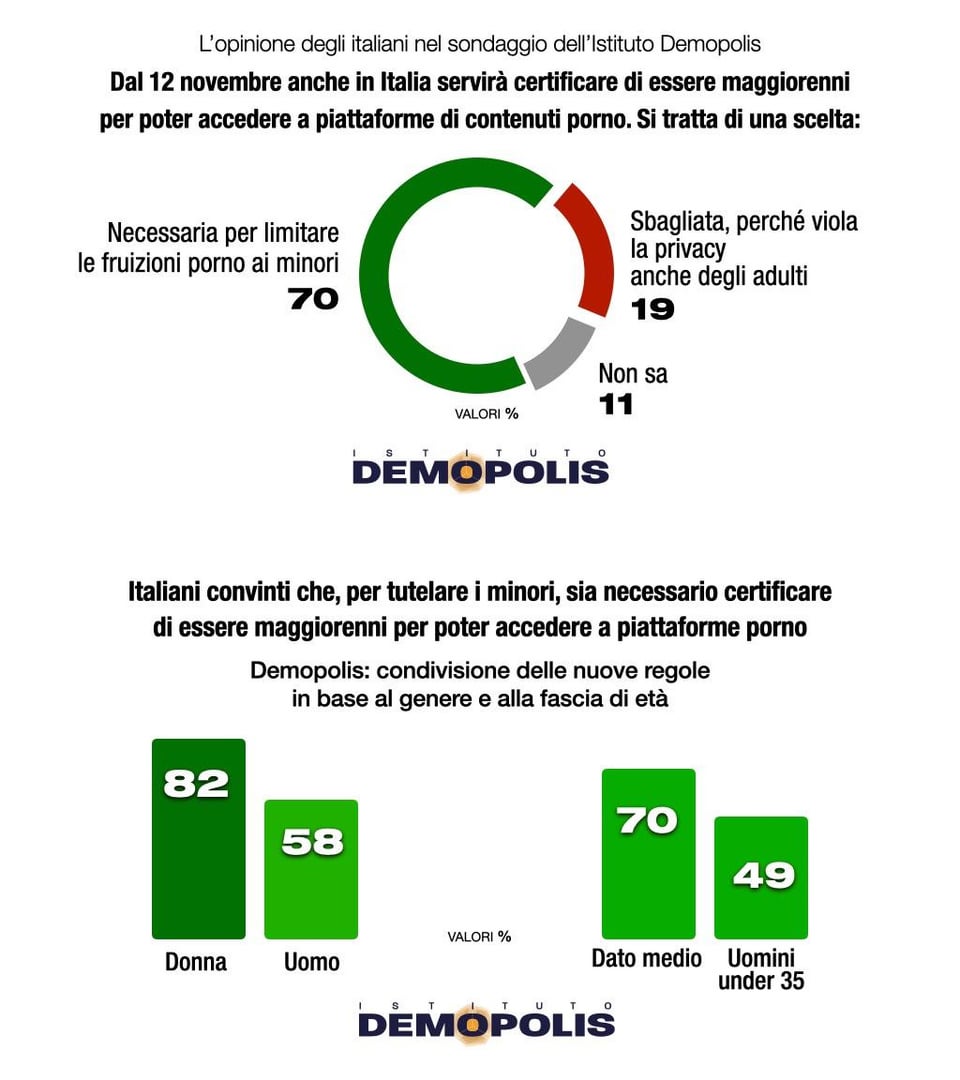 Quelle: Die Meinung der Italiener in der Umfrage des Demopolis Institute: die neuen Regeln zum Schutz Minderjähriger beim Zugriff auf Pornoseiten – Demopolis