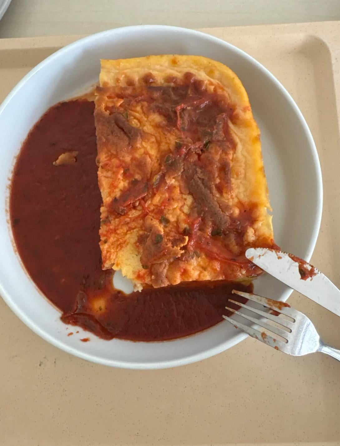 Vom Bild her habe ich mich zuerst noch für dich gefreut, weil ich das für eine Lasagne gehalten habe :‘) Wäre schon mal mehr Nährmasse gewesen als ein Haufen trockener, geraspelter Karotten oder ein paar Scheiben Gurken… Aber wenn es nicht wirklich essbar ist, hilft das ja auch nicht…