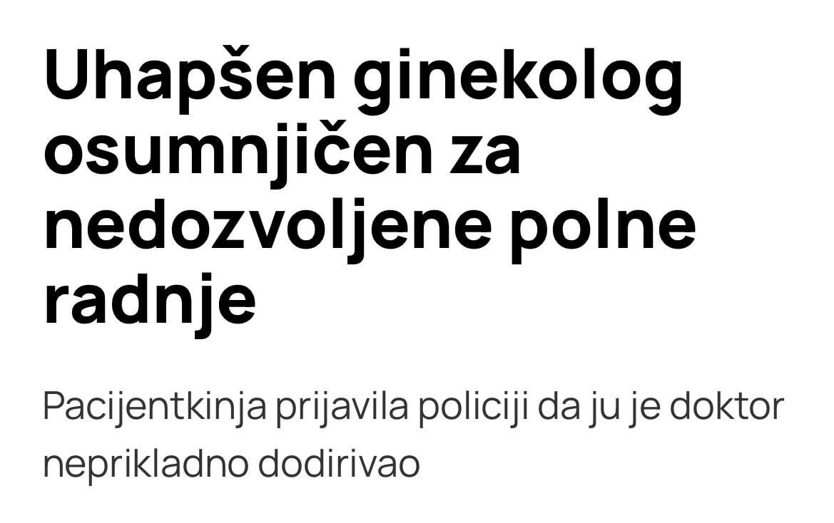 Djevojke ne mogu da imaju povjerenje u cijeli zdravstveni sistem povodom nečega tako važnog i osjetljivog kao što je žensko zdravlje, jbg. Ja imam ogromne traume od ženskog ginekologa državnog, i držim se mog muškog privatnog. Tako da nije do pola samog doktora nego do toga što naš truli sistem omogućava da sociopate i polupani ljudi budu ti kod kojih idemo kad nam je neka najintimnija nužda. Raspad.