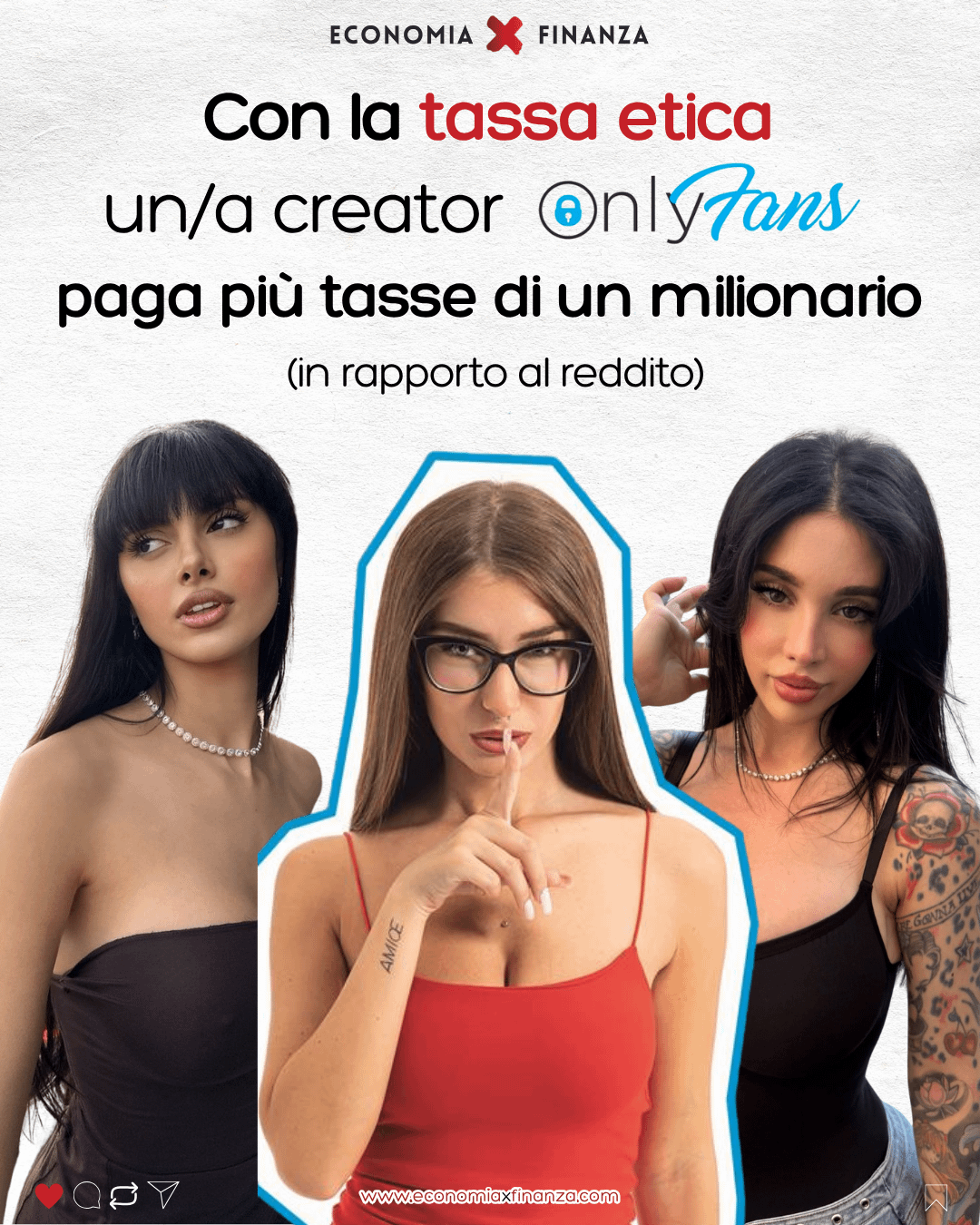 Tralasciando il fatto che chiamare „creator“ chi si prostituisce online è patetico, trovo personalmente giusto che quel tipo di squallida attività estremamente redditizia sia ultra tassata, non solo per una questione morale (le professioni non sono tutte uguali, è proprio così) ma anche per il laido indotto che crea intorno a sé.