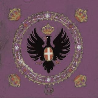 Lo stendardo reale di casa Savoia riprodotto dagli acquerellisti per la prima enciclopedia italiana. Resterà in uso fino al referendum istituzionale del 2 giugno 1946 e alle elezioni per la Costituente, quando per la prima volta nella storia d’Italia votano le donne.