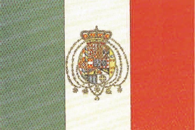 Davanti all’avanzata delle truppe garibaldine della spedizione dei Mille, Francesco II di Borbone fa un disperato tentativo di adottare il Tricolore del 23 giugno 1860 per il Regno “costituzionale” delle Due Sicilie, ornato “delle Armi della Nostra Dinastia”: lasciata Napoli senza combattere, resiste qualche mese a Gaeta, sul cui forte sventola questa bandiera fino al marzo 1861. Il Re sconfitto ripara in esilio a Roma e da lì fuggirà nel 1870 per la Francia.