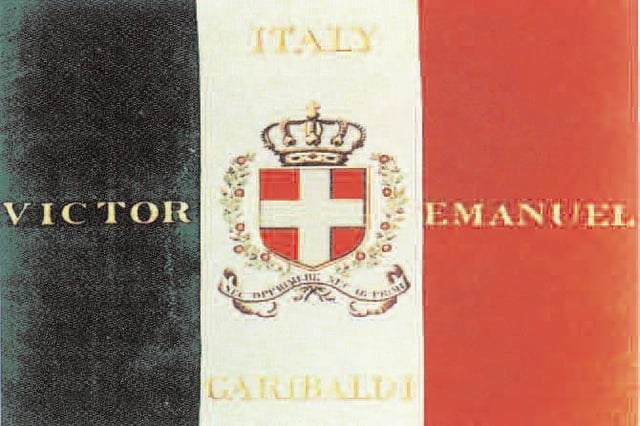 * 12) Il Tricolore regalato da Giuseppe Garibaldi al generaleWhitehead per la collaborazione inglese alle campagne militari del 1859-1860. È ora conservato a Roma nell’Ambasciata del Regno Unito in Italia.