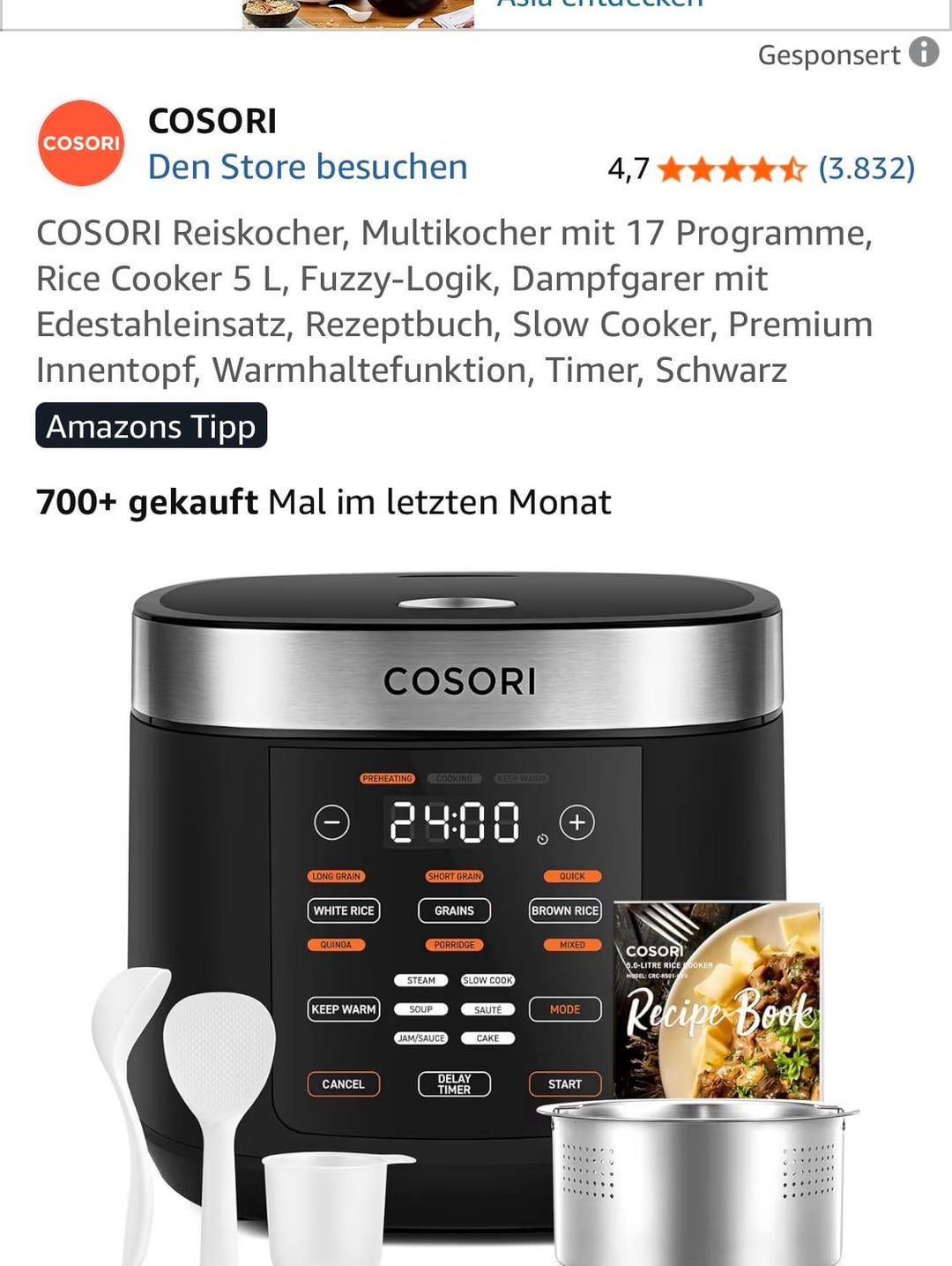 Ich wollte auch irgendeinen Speziellen. Bin aber bei Reishunger gelandet. Guter Reiskocher. Hab mir noch einen Metalldampfgareinsatz dazugekauft, da ich nicht so gern Plastik mag.
