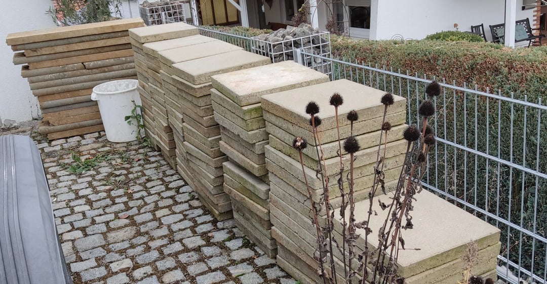Und die Platten, naja, auf Kleinanzeigen verkaufen (oder verschenken). Wäre vermutlich meine erste Wahl. Aber natürlich kann man daraus auch eine Mauer oder so bauen. Schön mit Schlitzen und Rissen damit Eidechsen und so reinkönnen…aber so Betondinger sehen halt eher so naja aus, anders als der Naturstein.
