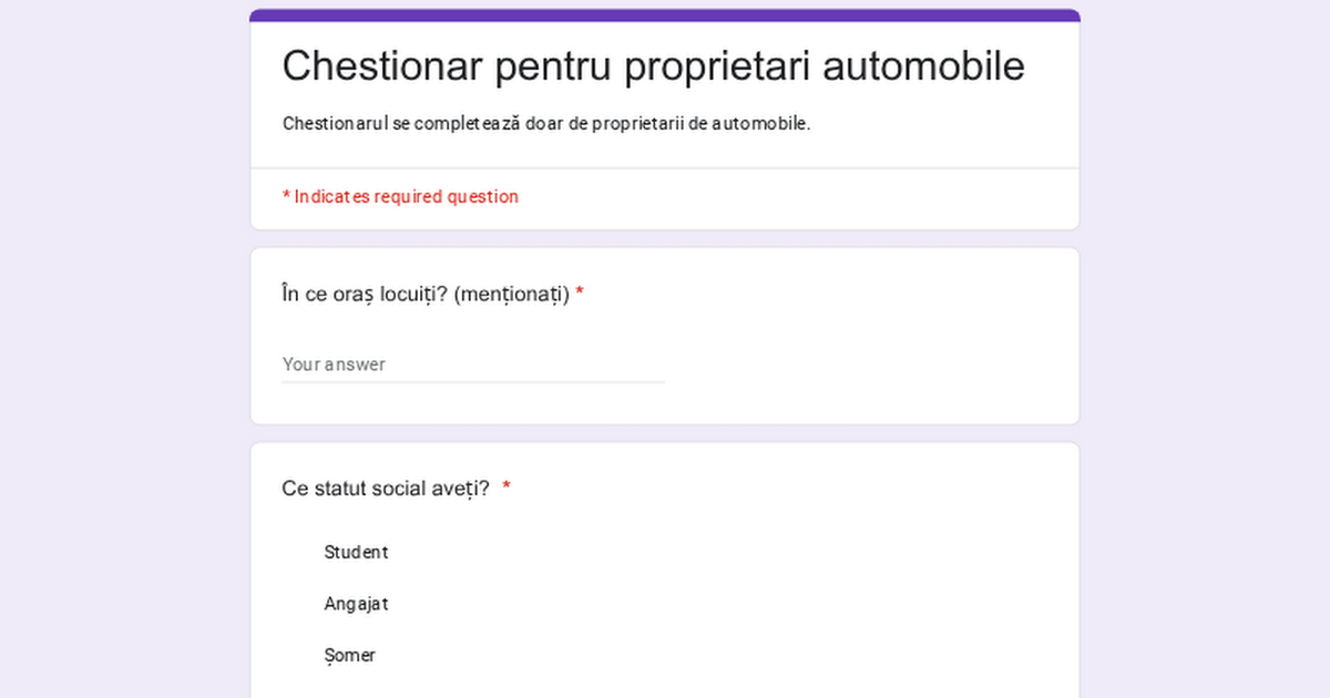 [Chestionar proprietari auto](https://docs.google.com/forms/d/e/1FAIpQLScdWSu6CMkMP_RKqqXeEoGOsOi5EE2dh5IqAsyr09keWWZpHw/viewform?usp=dialog)