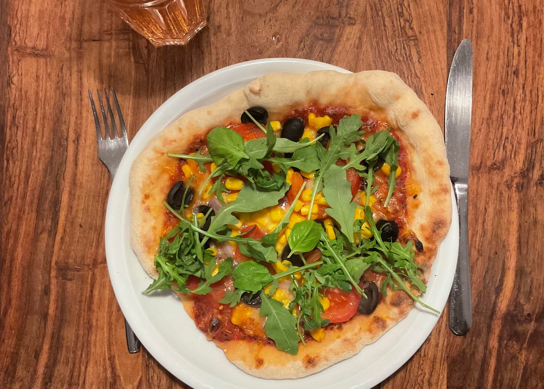 Lustig. Hier gab’s heute auch Pizza. Allerdings aus einem normalen Backofen mit Scharmottstein.