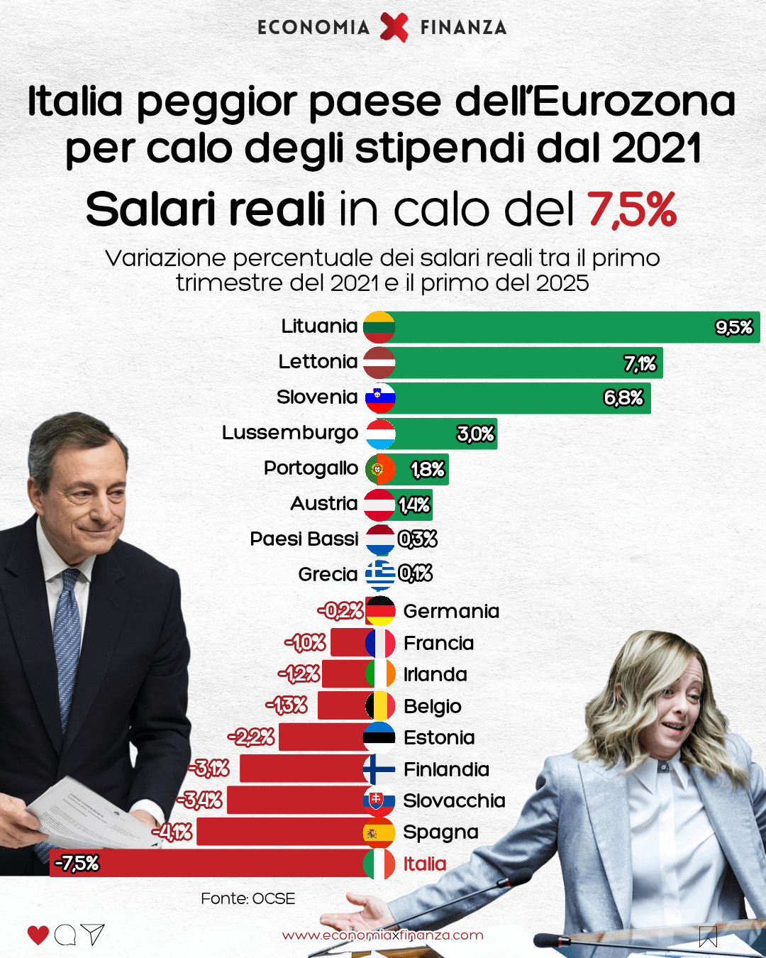 Trotz des größten Einsatzes öffentlicher Mittel seit der Nachkriegszeit sinken die Löhne in Italien weiter.
