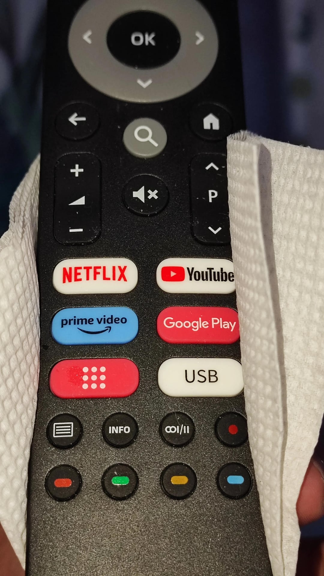 А зачем пульт держать через салфетку? Боишься отпечатки пальцев оставить?