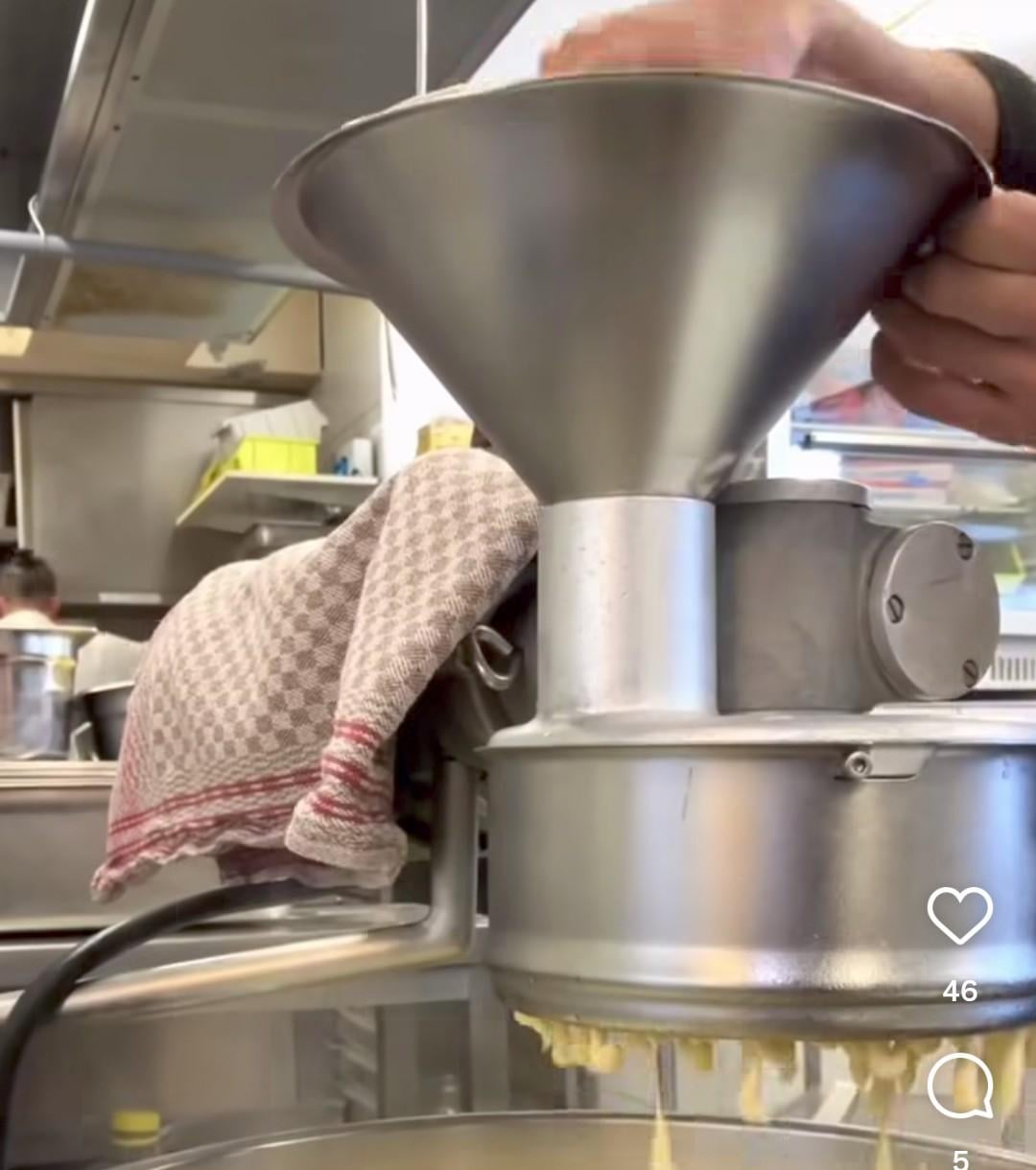 Quasi ne Art Spätzlewelle, bzw Spätzlemaschine, das Modell hier sieht halt aus wie was aus der Gastro – da find ich auf die schnelle nix auf Google. Aber Goldspatz / Spätzlewelle hat kleinere Modelle für sowas.