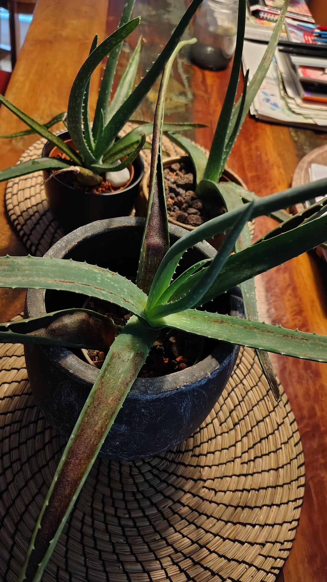 I need help with this aloes pls. All three seem to have the same issues. I'm still new to plants and am a little lost. They seem to not getting enough light which is very possible as I kept them in a not very sunny spot. I'm planning to get grow lights.