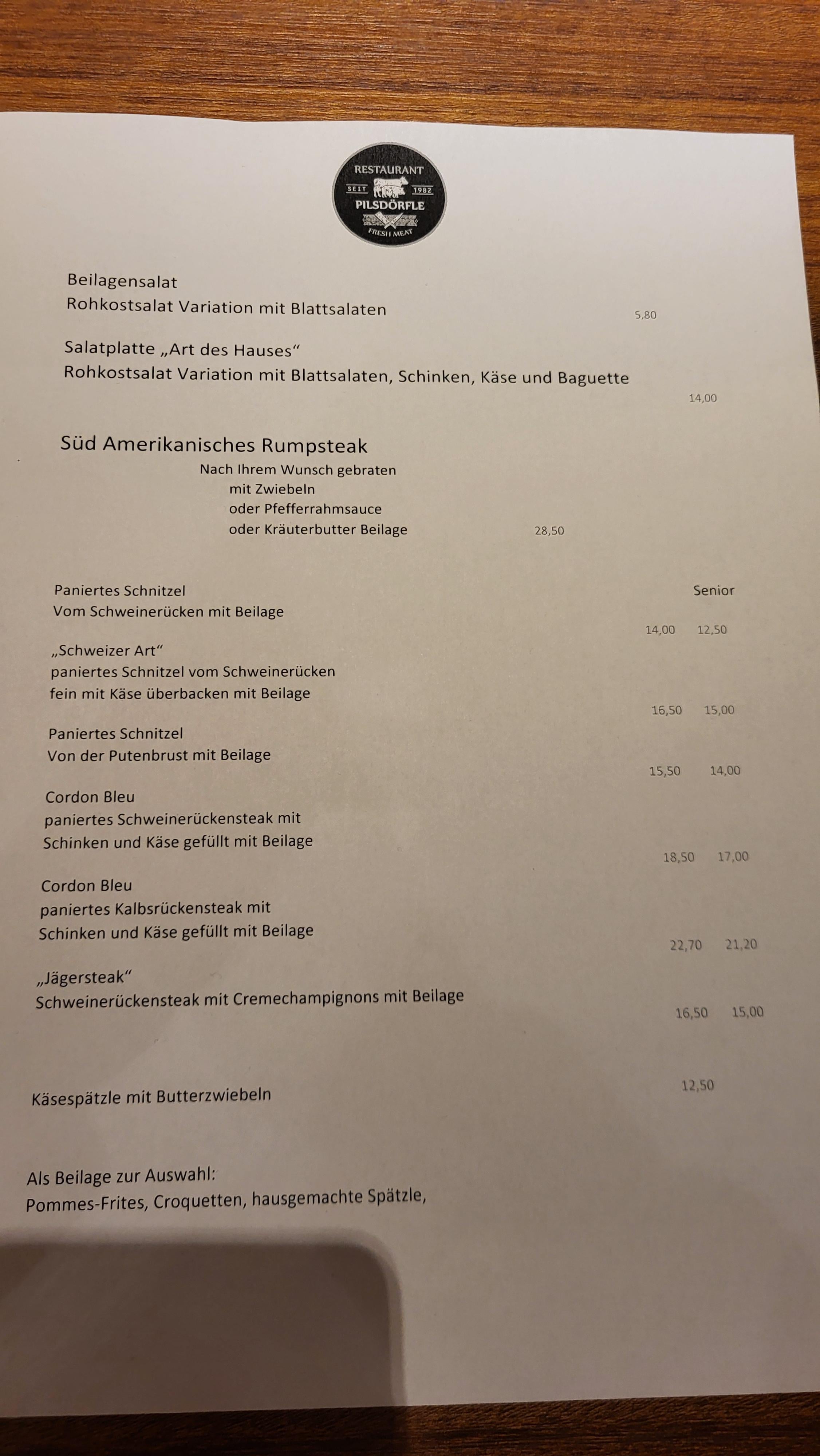 Bei einem Lokal auf dem Land das Pilsdörple heißt und „Fresh Meat“ im Logo stehen hat dann eine super Veggieauswahl zu erwarten ist schon irgendwie dumm.