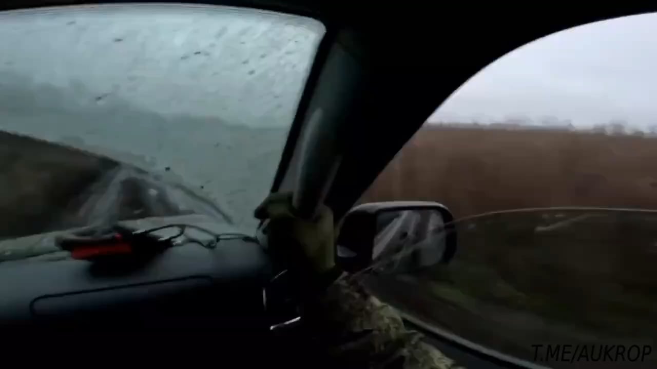 In der Abenddämmerung fahrende Russen werden von einem ukrainischen FPV, einer Passagier-GoPro und einer Überwachungskamera (POV) getroffen