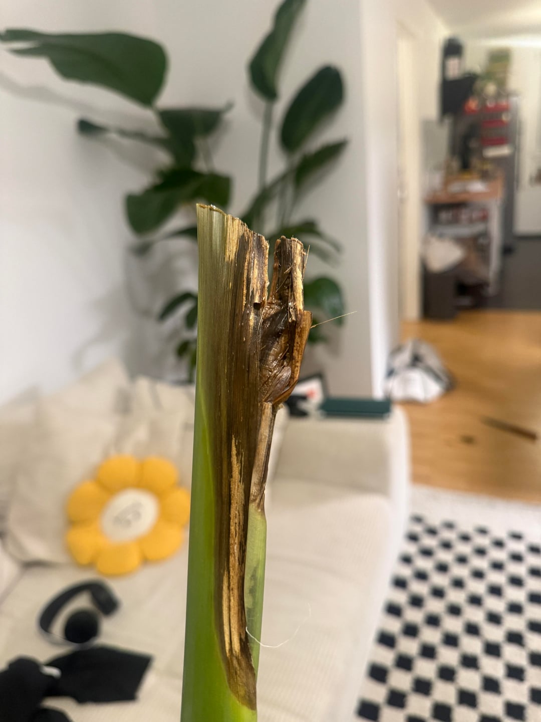 Edit: wieso sieht die Pflanze auf einem der Bilder am Stiel so abgeschält aus? Habt ihr Tiere?
