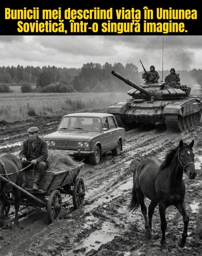 Locul unde se întâlnesc secolul 19 (căruța), secolul 20 (Lada) şi forța militară brută, toate învinse de acelaşi inamic: noroiul. Absurdul și realitatea într-un singur cadru