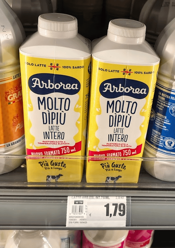 Esselunga Arborea a 0.95, mentre 1.29 quello mila senza lattosio.