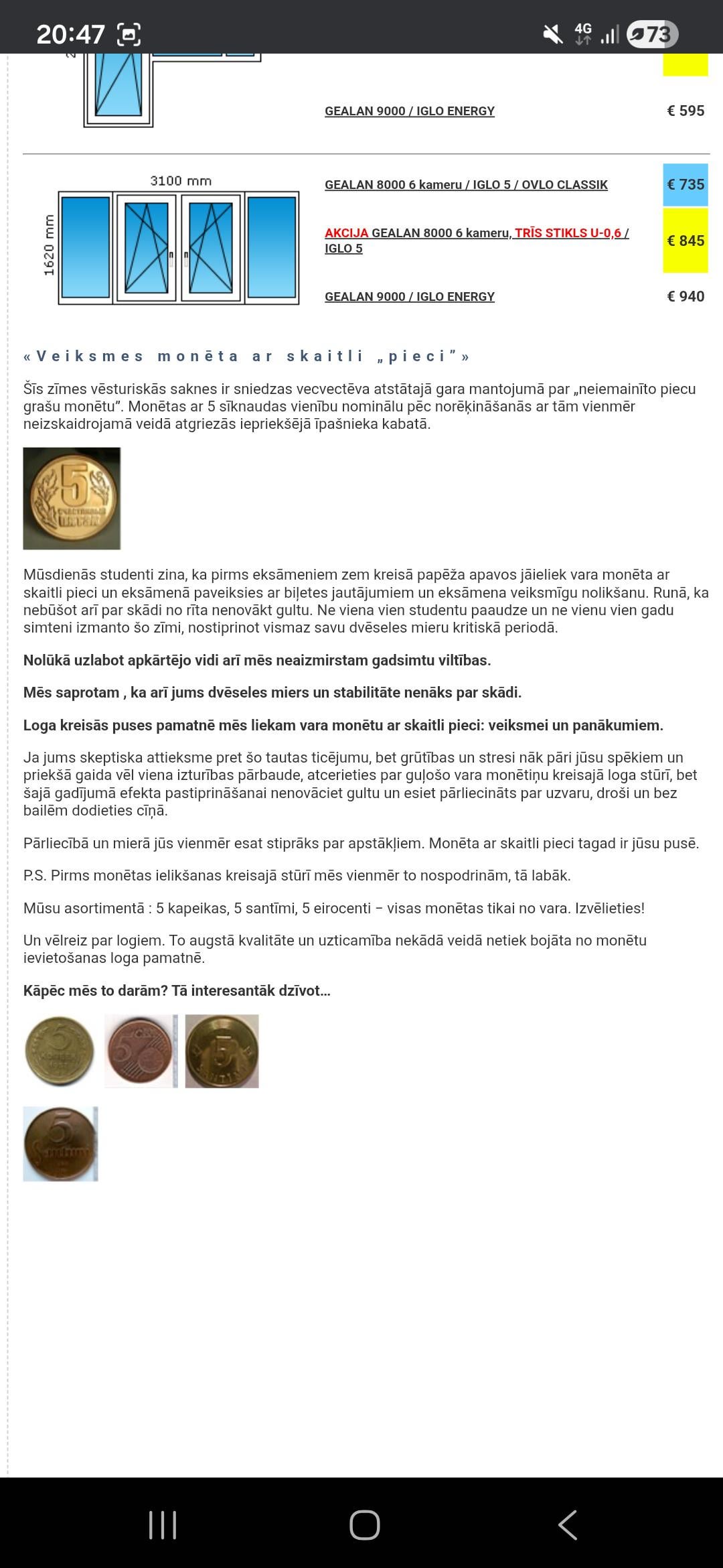 Es tikko no Eiro durvīm pasūtīju logs. Cena likās +/- ok, atsauksmes arī tīri ok salīdzinot ar citām firmām. Redzēs, kā būs, kad ieliks.