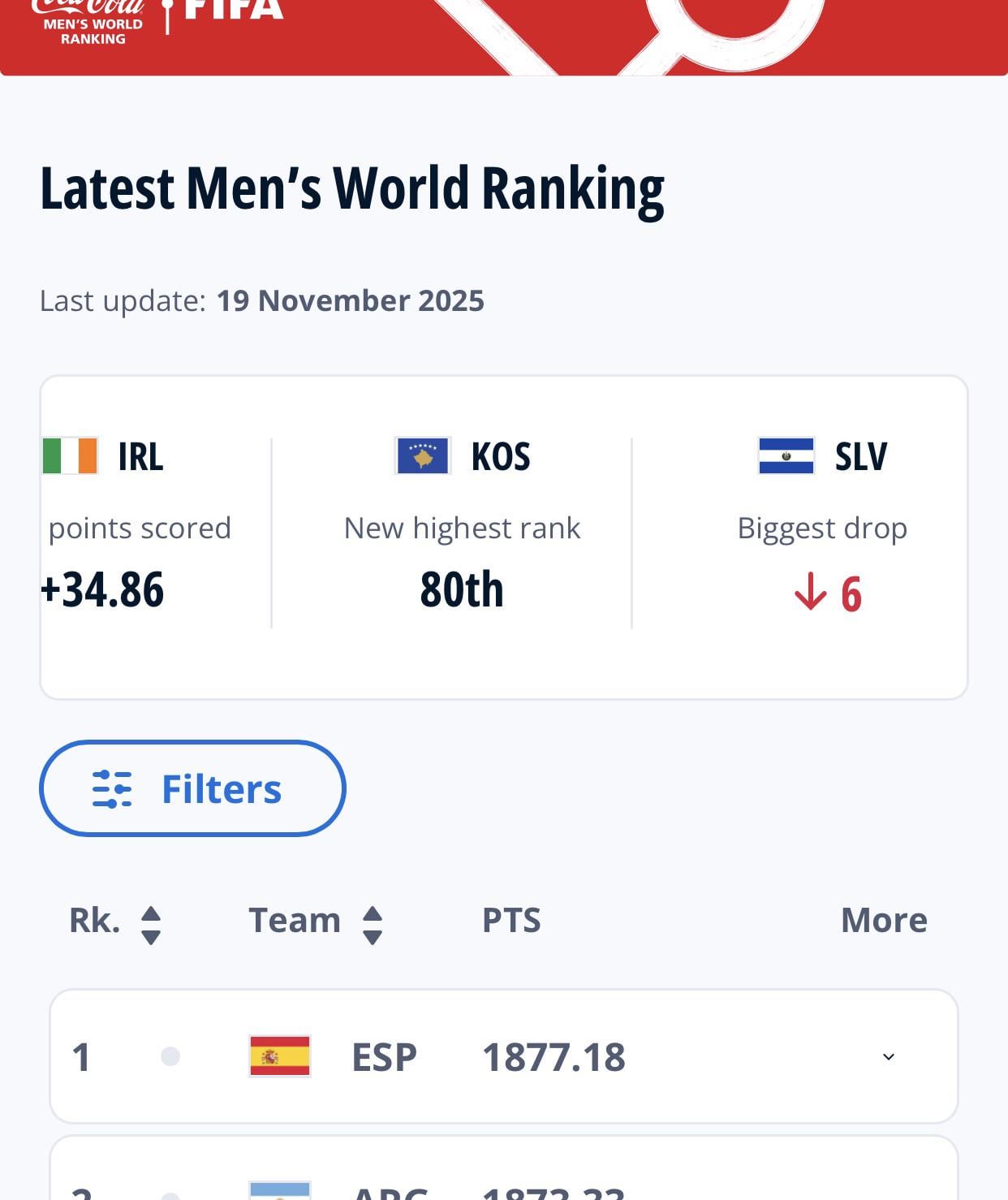 Was für eine gute Nachricht, Kosovo vom 190. auf den 80. Platz! Respekt für unsere Jungs! 🇽🇰🇦🇱🦅
