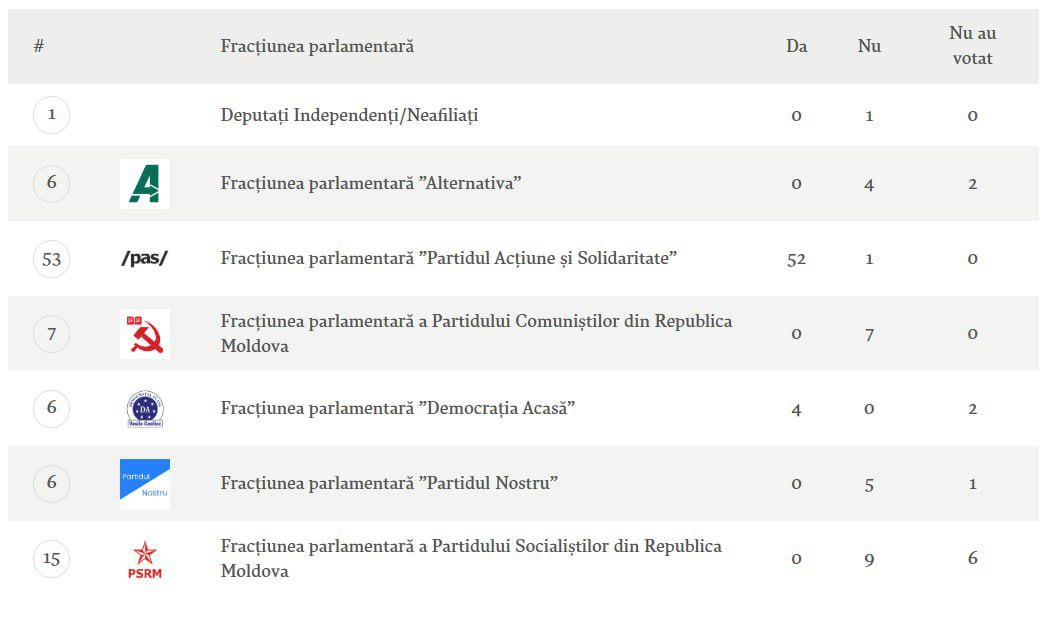 Șase deputați de la PSRM s-au abținut de la vot.