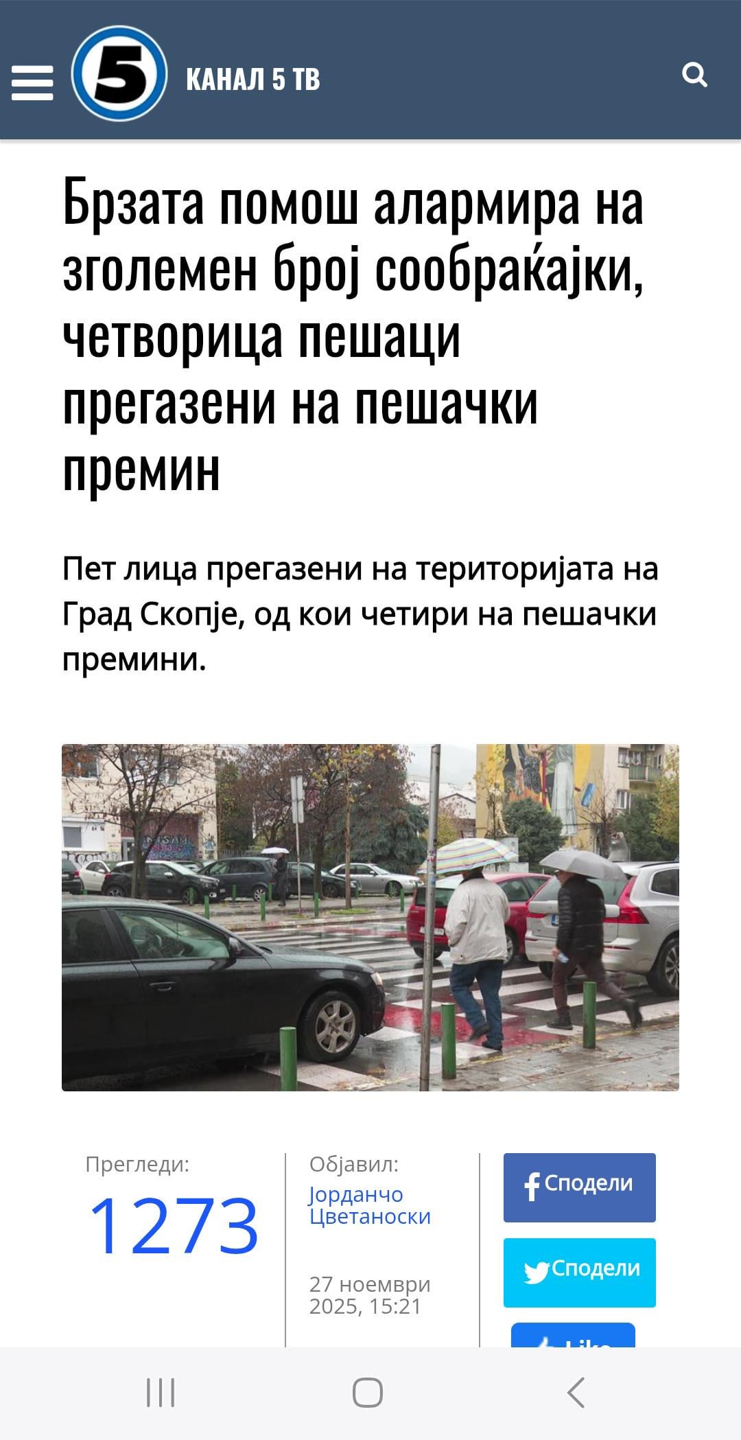 Мене еден ќе ме собереше кај влада прошла недела, среќа го видов дека нема у план да закочи и се фрлив наназад. На тоа, пошо се исплаши, замислете ми свиреше и со раката ми покажуваже куку. Мајката у п. сакав да му ја расплачам ко*иле
