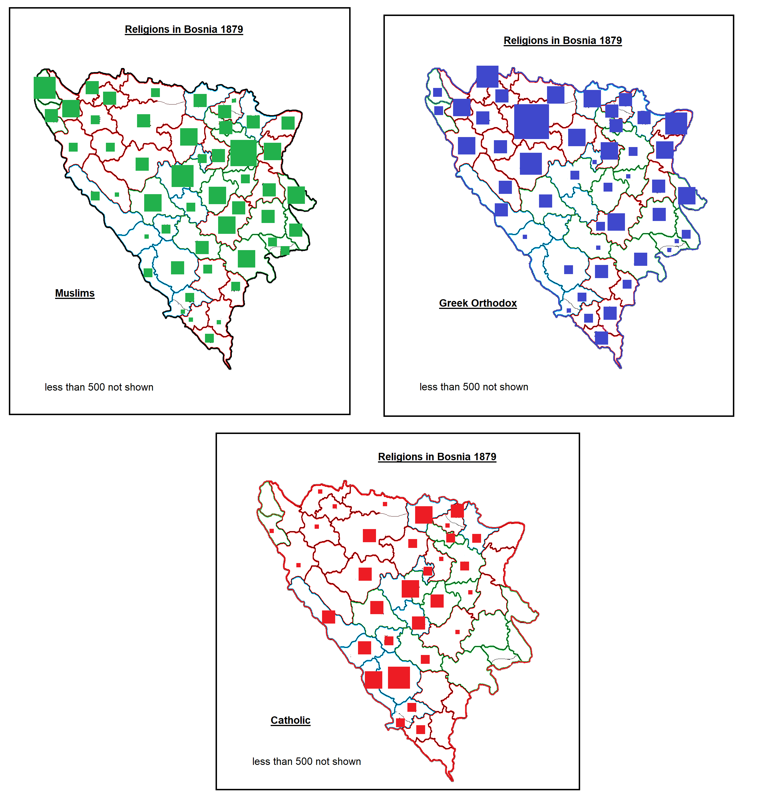 Religionen in Bosnien-Verteilung von 1879, Muslime, Orthodoxe und Katholiken