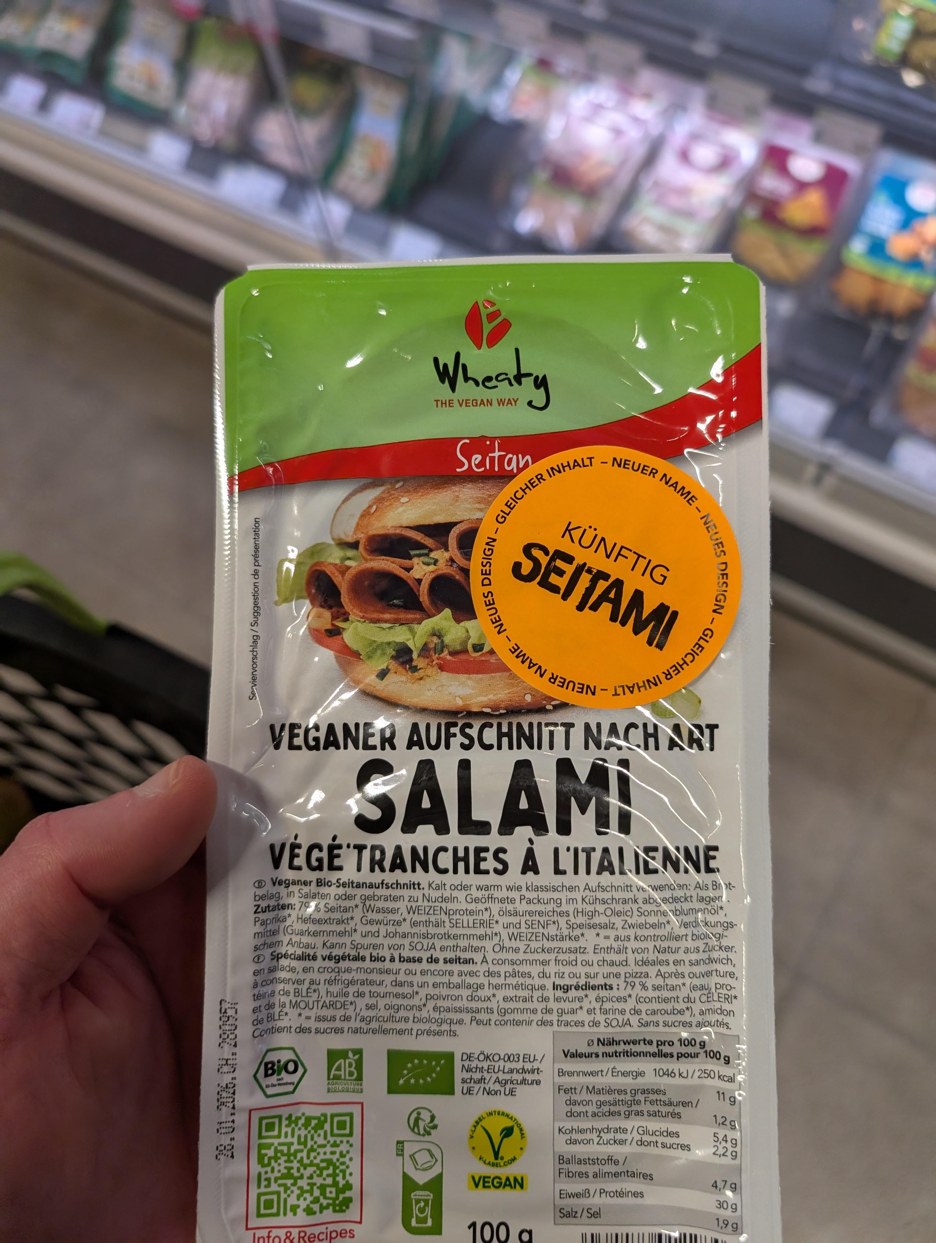 Ist auch total verwirrend wenn groß auf der Verpackung vegan und Salami.