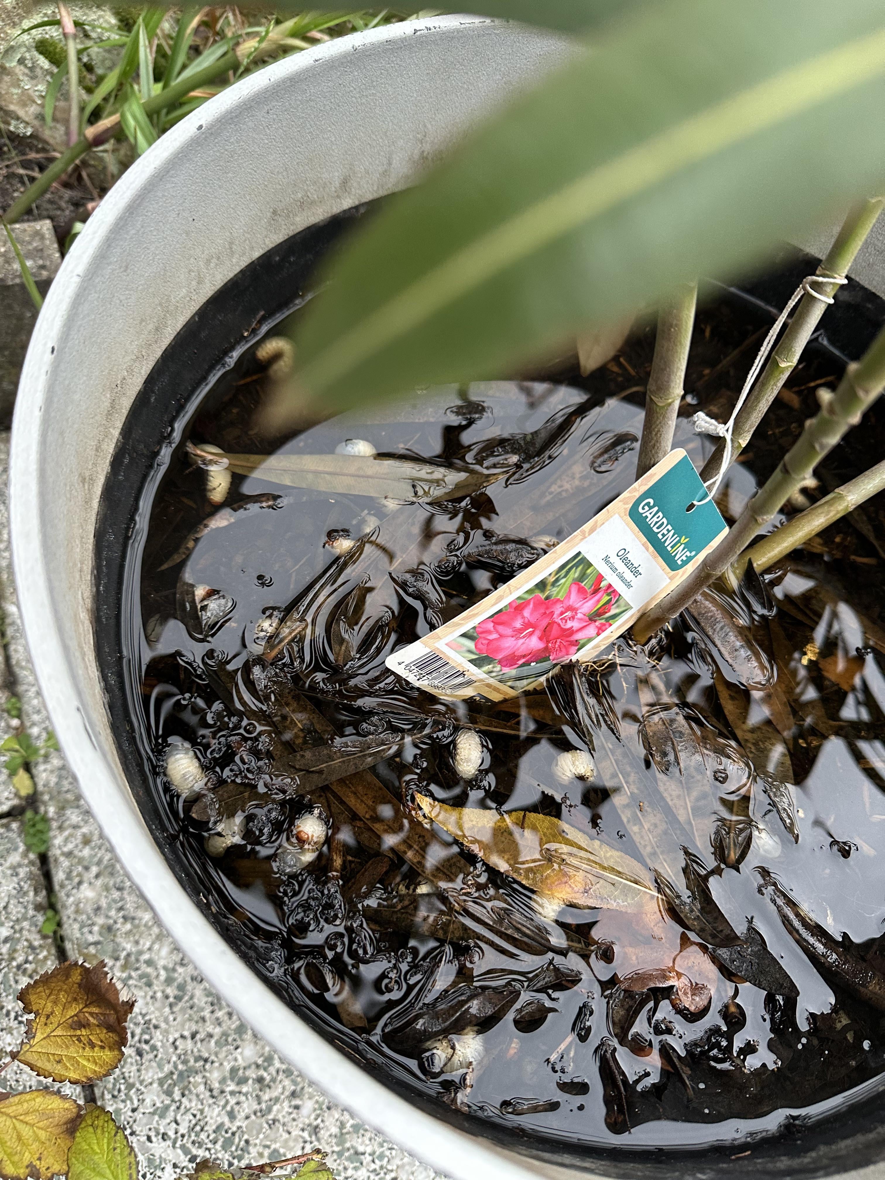 Engerlinge – Google mal, dann kannst du die Sorte bestimmen. Aber ich schätze sie sind sowieso alle ertrunken 😝