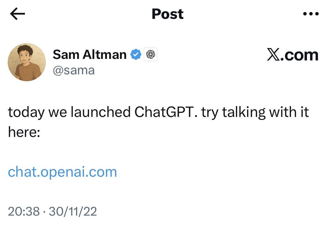 letmebackagain on 30.11.2025 8:36 p.m. Uno dei momenti che rimarrà nella storia che ha dato il lancio alla corsa della AI. Uno dei momenti più belli della storia.