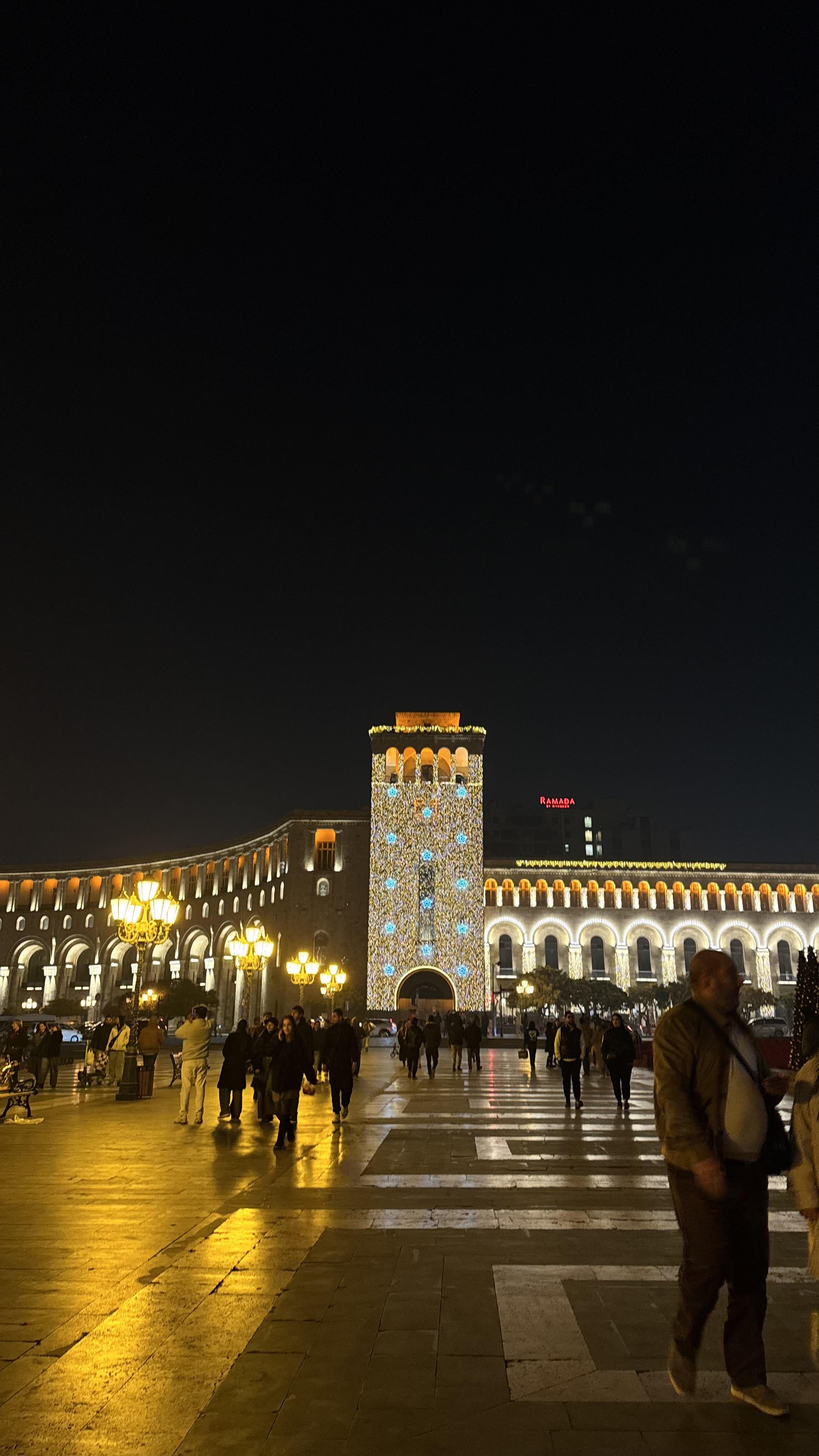 Weihnachtsstimmung auf dem Platz der Republik. Eriwan, Armenien.