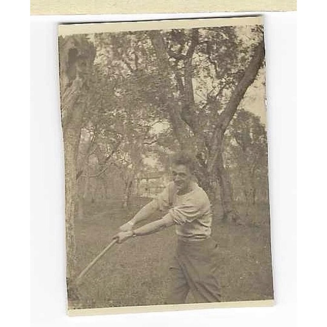 >Am enclosing a snap of myself as you requested. It is the only one I have so don’t hold it against me. It was taken in Italy and we really (my friend and I) did chop that tree down. Now how’s about you reciprocating and sending me one of yourself!