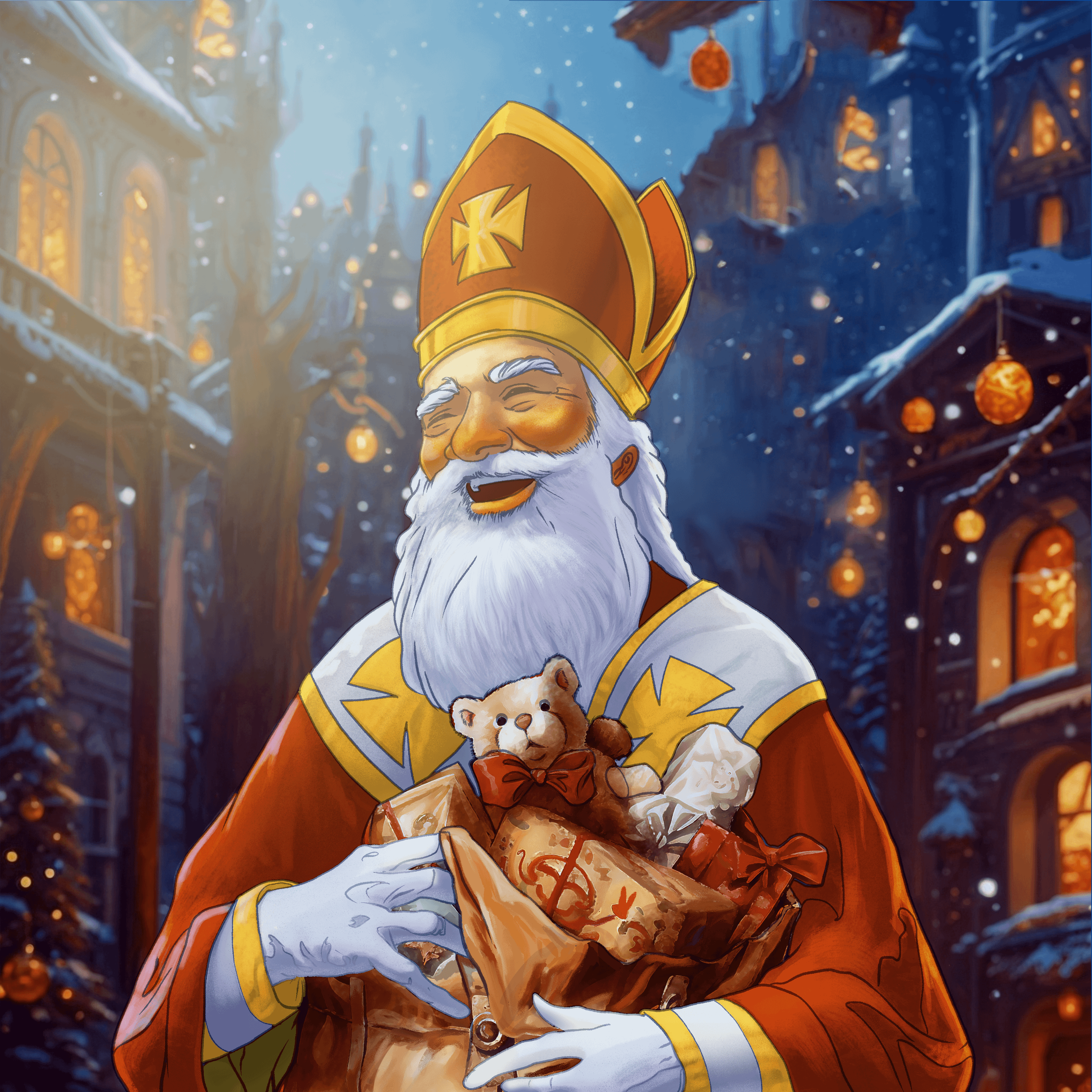 Hallo zusammen! Ich bin ein Illustrator, der hier in Luxemburg lebt, und habe kürzlich ein illustriertes Weihnachtsbuch fertiggestellt. Dieses Kunstwerk des Heiligen Nikolaus ist das letzte Cover und ich wollte es mit der Community teilen.
