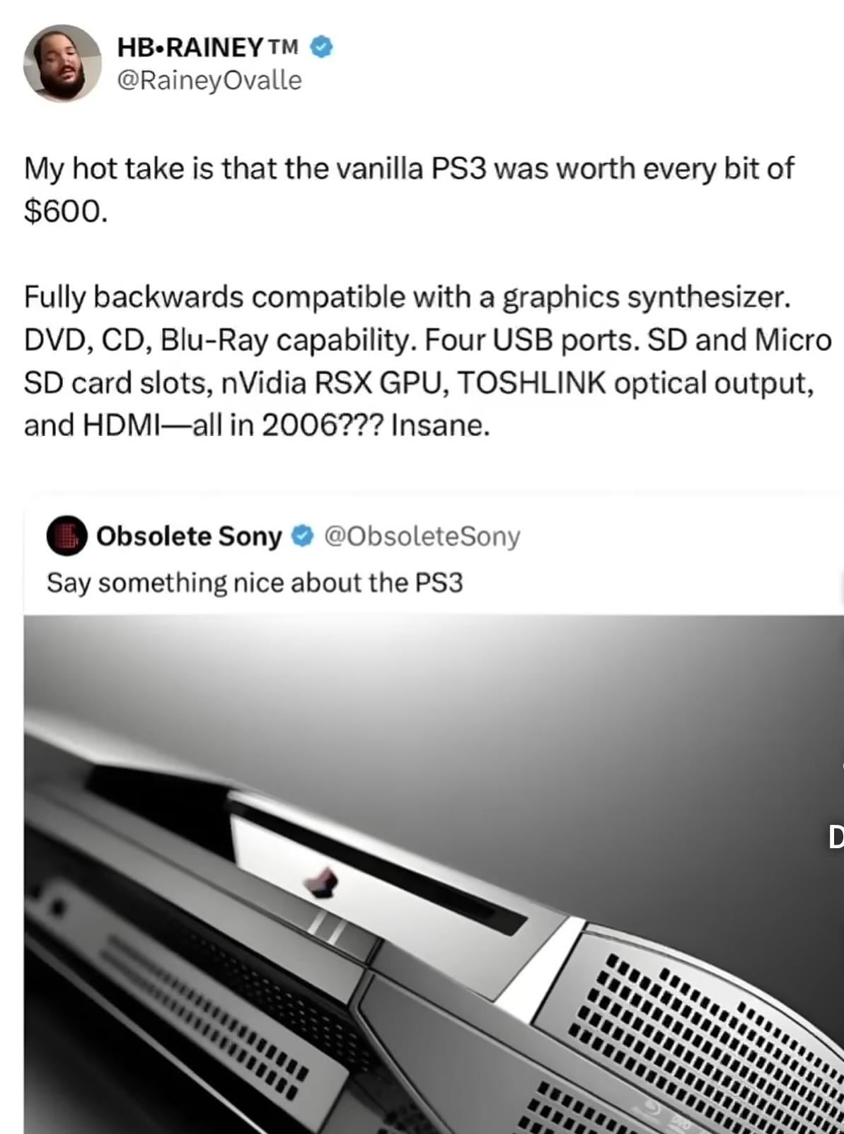 The original PS3 was about the right price for what it contained, but Sony failed to understand most consumers wanted to play games, not a super computer. The only difference is now the products today don’t match the price tag.