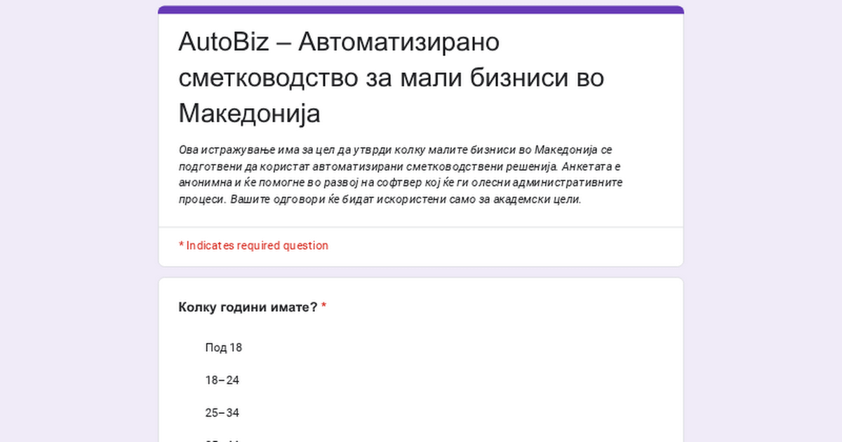Анкета: Автоматизирано сметководство за мали бизниси во Македонија