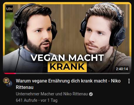 Ein Unternehmer und Niko Rittenau in einem Podcast die über veganismus schwurbeln, das muss ich unbedingt verpassen. Bitte sage mir nicht Bescheid falls eine weitere Episode erscheint