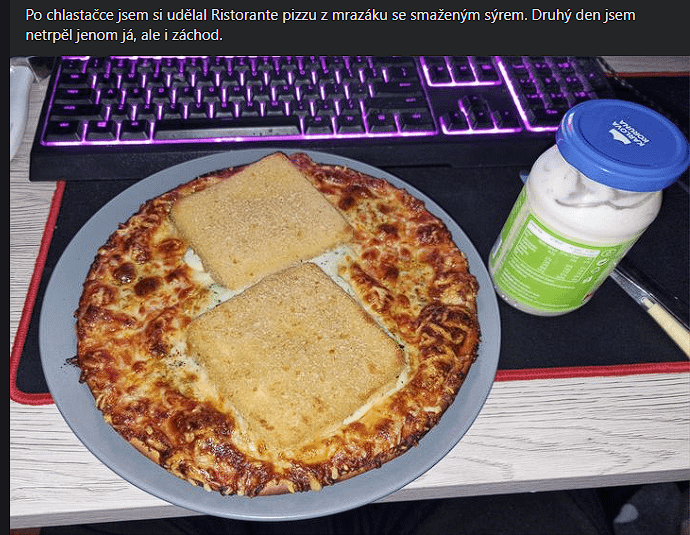 Přidal jen normální porci sýru na ojebanou pizzu, takže tam nic OVERLOAD nevidím. 😀