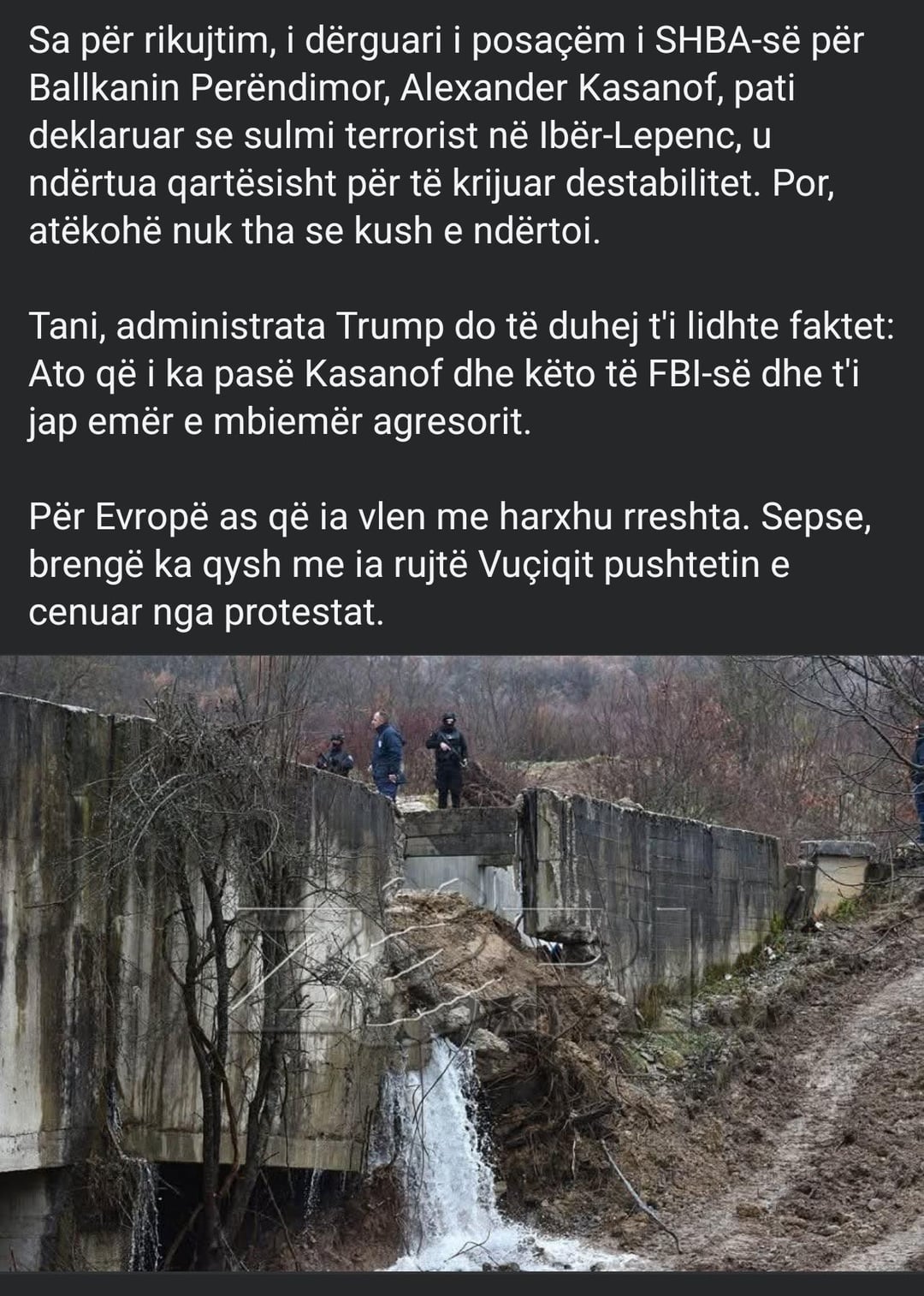 Mos aktroni sikur polict tone skan shkel kurr ma heret ne Veri, problemi osht se 60 ushtar te kforit jane plagos me manovrat e Kurtit kishe po i boj kryetar te komunave sigurimat e objektit me ka 7 vota, e nfund meten pa buke se sguxojshin me dal prej zyres me ble me honger. Qeky osht konflikti qe na qiti ne sanksione, e jo ky rasti qe po e permend ky haveri, ose Banjska. Po i shtramoni senet