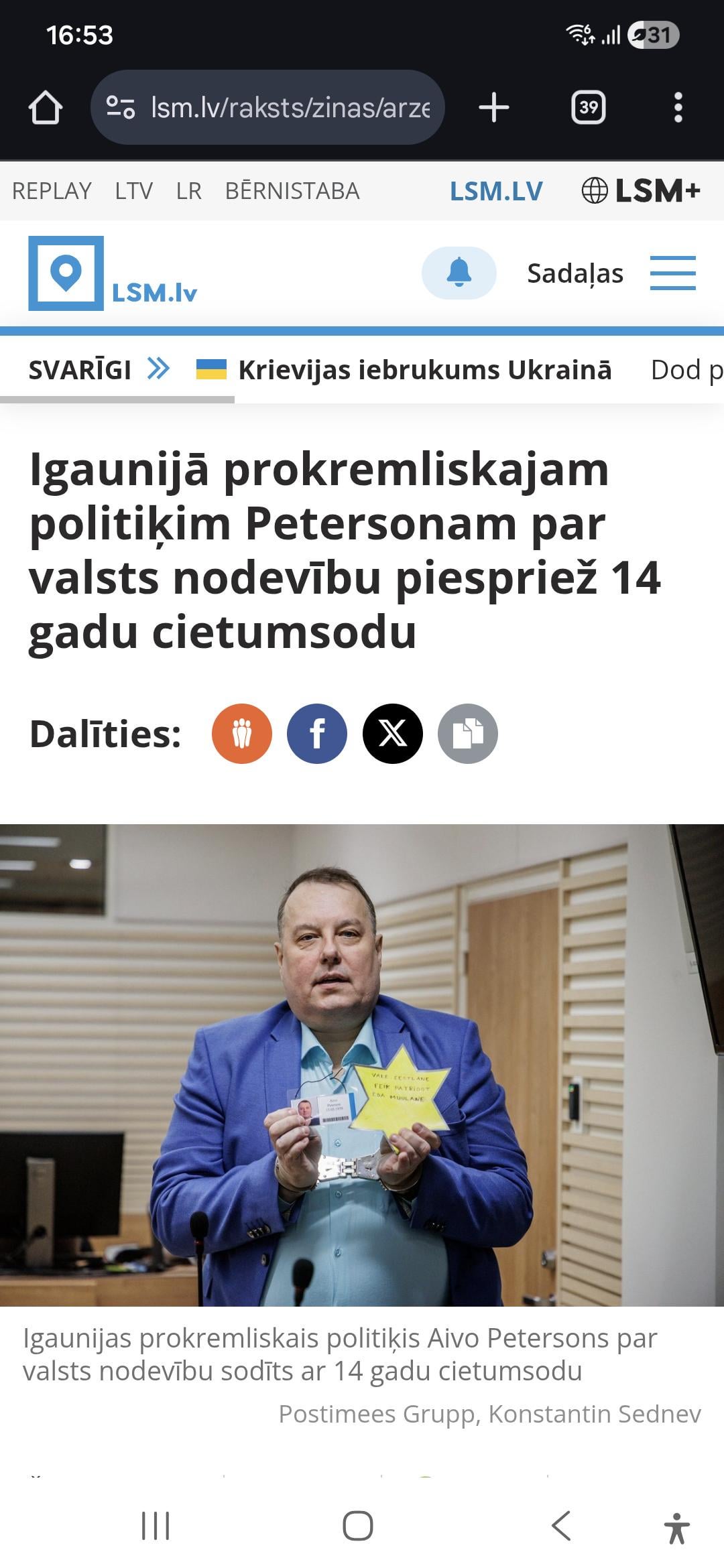 Wenn jemand den vollständigen Artikel möchte, ist dies der Link https://www.lsm.lv/raksts/zinas/arzemes/11.12.2025-igaunija-prokremliskajam-politikim-petersonam-par-valsts-nodevibu-piespriez-14-gadu-cietumsodu.a626002/