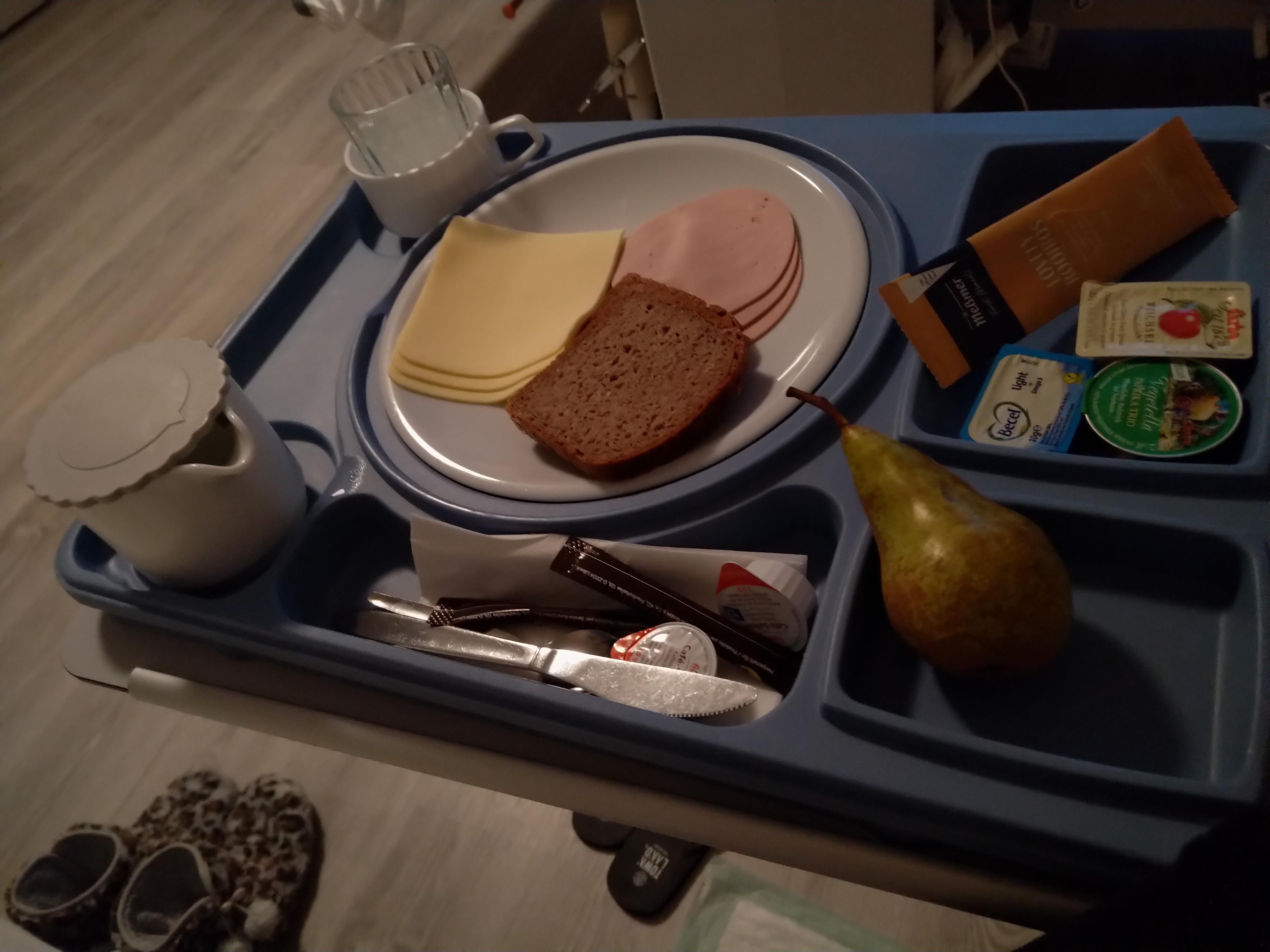 Ist das tatsächlich veganer Käse und vegane Wurst? Sind auf jeden Fall ganz schön viele Scheiben, so großzügig kenne ich Krankenhäuser eigentlich nicht.