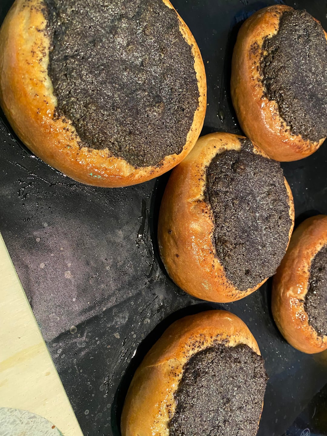 Sind belegt seit 500-600 Jahren bekannt und recht einfach. Ein Hefeteig mit Honig, Eigelb, Butter. Kugeln formen. Mittig eindrücken und ein Topping aus Mohn/Nuss/Quark gesüsst drauf und 15-20 Minuten backen.