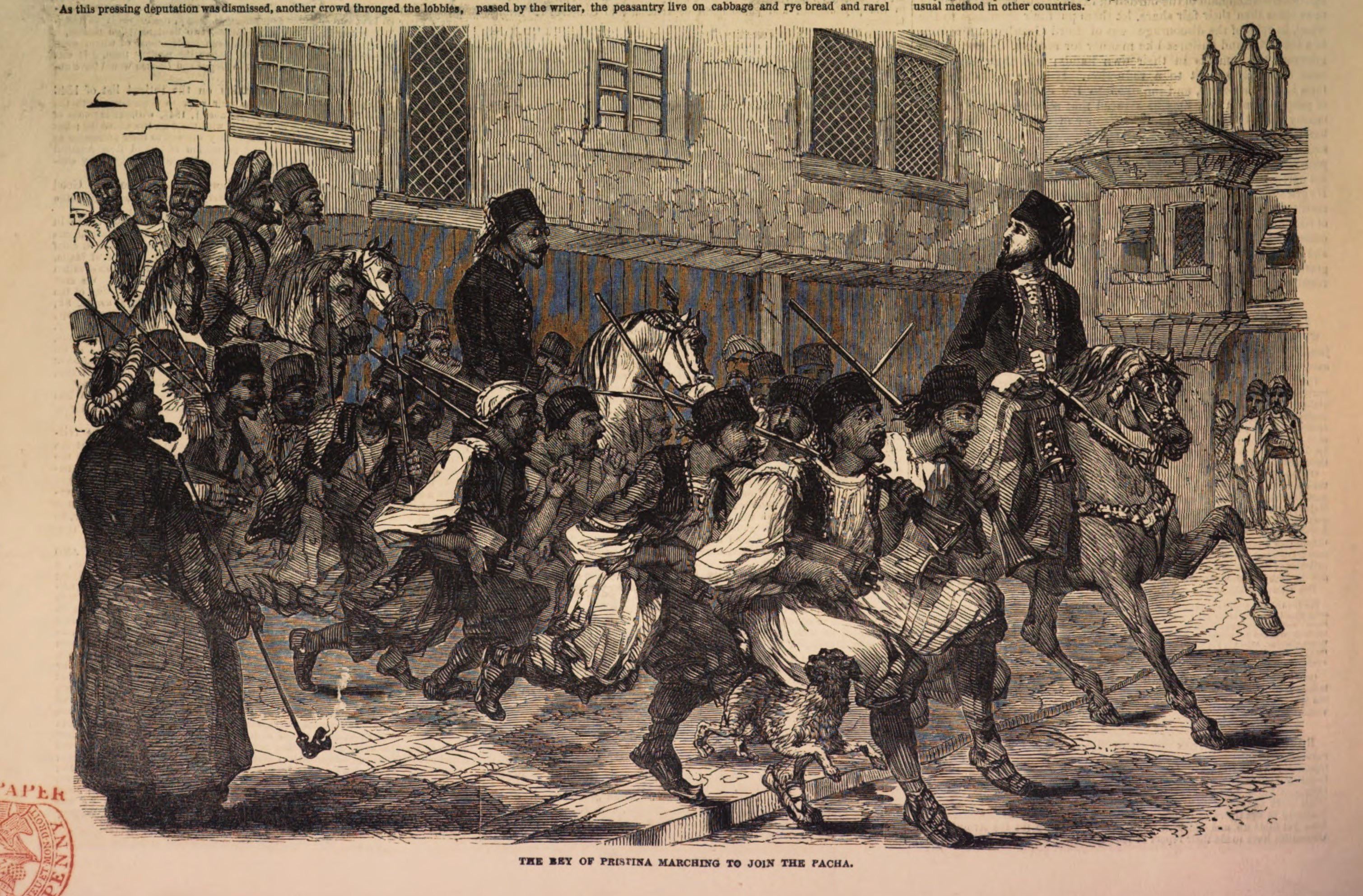 Unten steht geschrieben: Der Bey von Pristina marschiert, um sich dem Pacha anzuschließen
