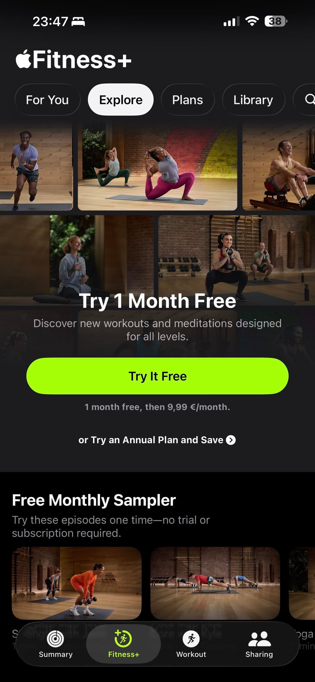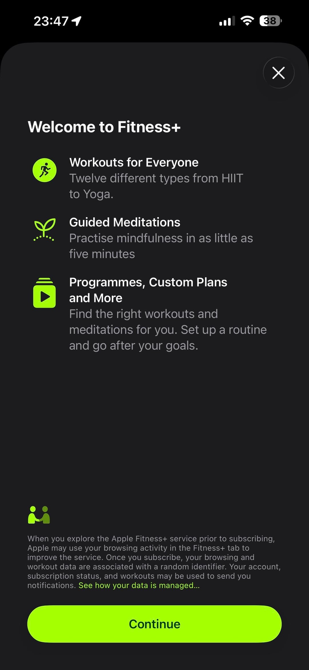 Wow, ich habe gerade die Fitness-App geöffnet und diesen Bildschirm mit der Verfügbarkeit von Fitness+ angezeigt.