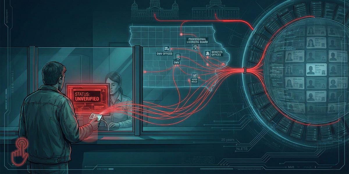 A key 5–10 year shift is interoperability: separate “eligibility” systems becoming a shared civic middleware layer across agencies and vendors. The risk isn’t just surveillance—it’s automation + error propagation: one bad flag can cascade across services (work authorization, licensing, benefits, banking KYC), creating a practical “lockout” without due process.