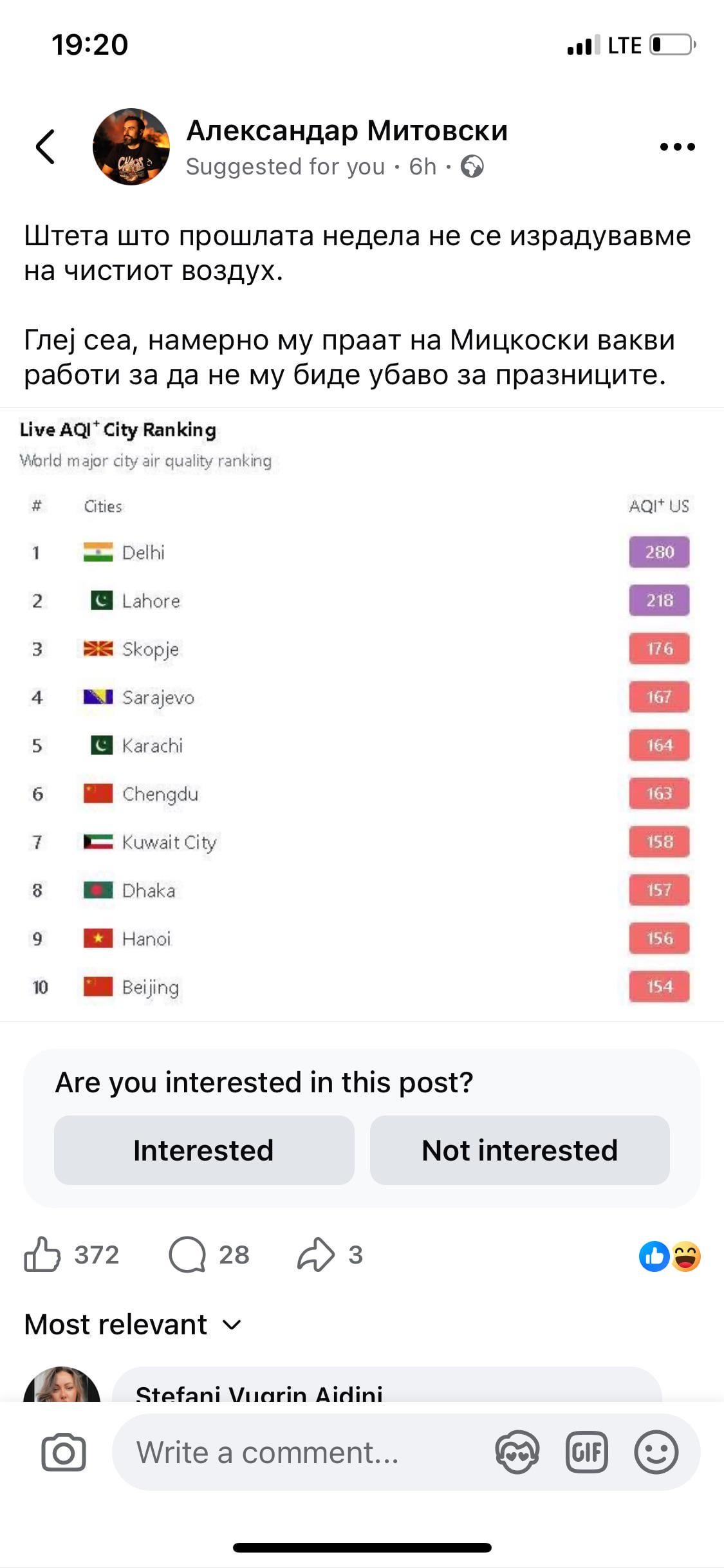 Само што сакав да го постирам истово. Надвор воздухот е КАНЦЕР веќе подолго време а ниту медиуми објавуваат ниту народов реагира.