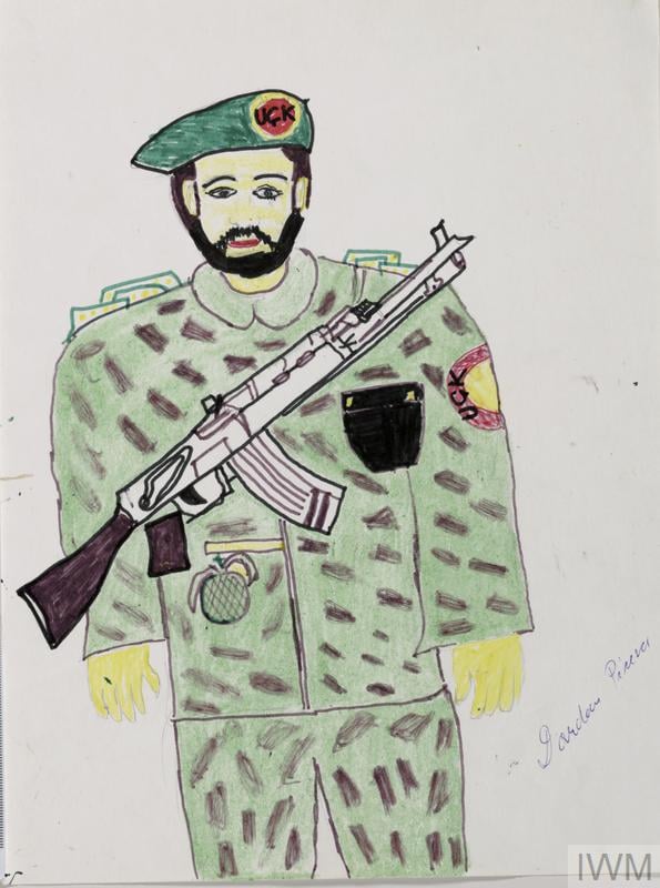 Kinderzeichnung eines Soldaten der Kosovo-Befreiungsarmee