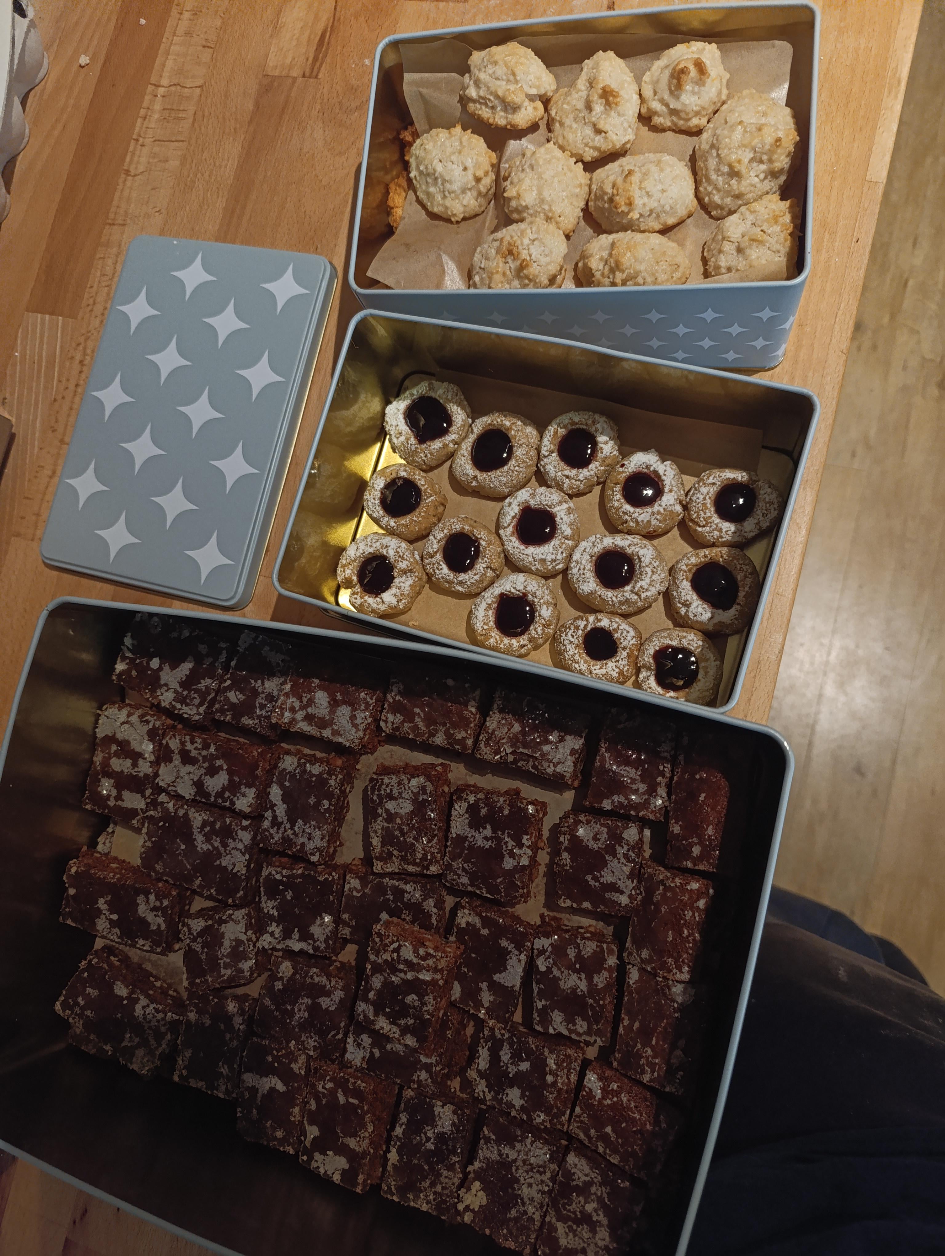 unten sind Baseler Leckerli, in der Mitte Husaren-krapferl, und daneben kokos-makronen 🙂 später kommen noch zimtsterne dazu Von toxicistoxic
